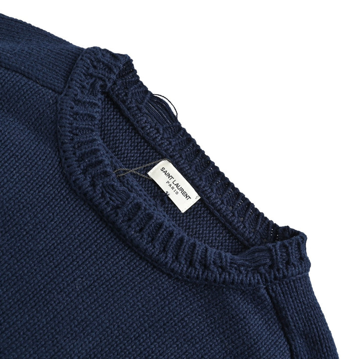 Made of 50% cashmere blended fabric, custom-woven and dyed yarn with no color difference, Stoll imported machine with 12 needles for sewing, custom-made YSL brooch on the chest, hand-damaged embellishment on the edge, high-end and elegant Klein blue