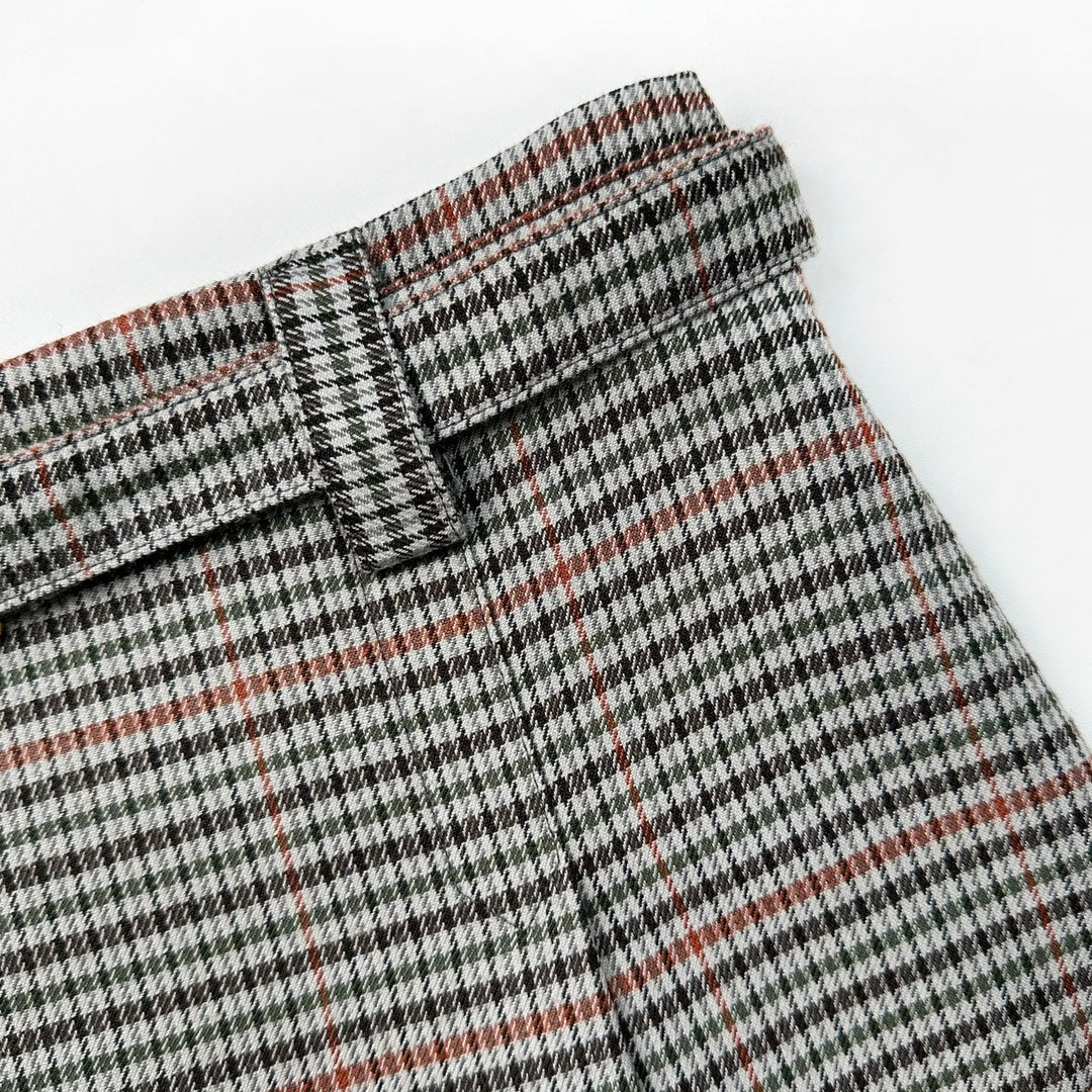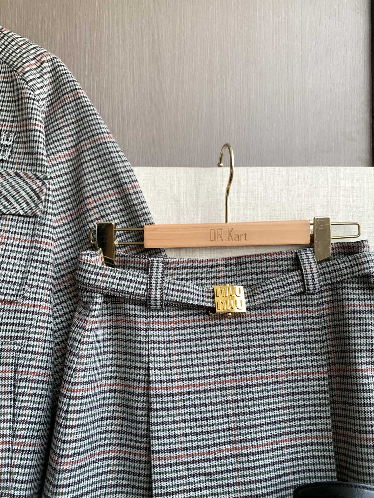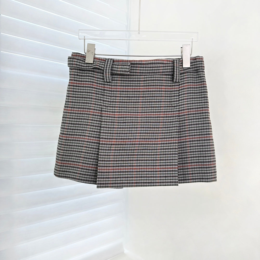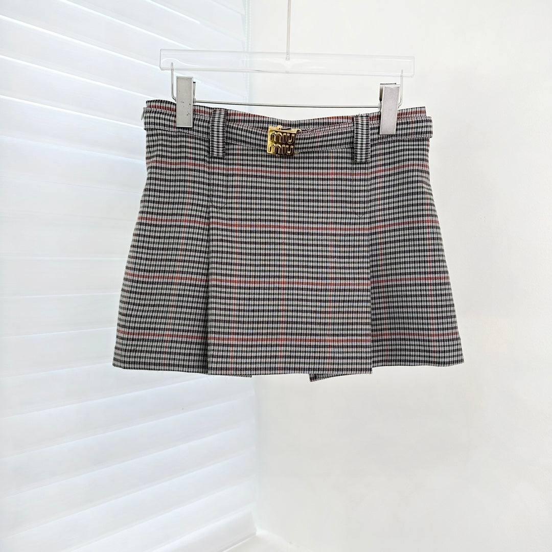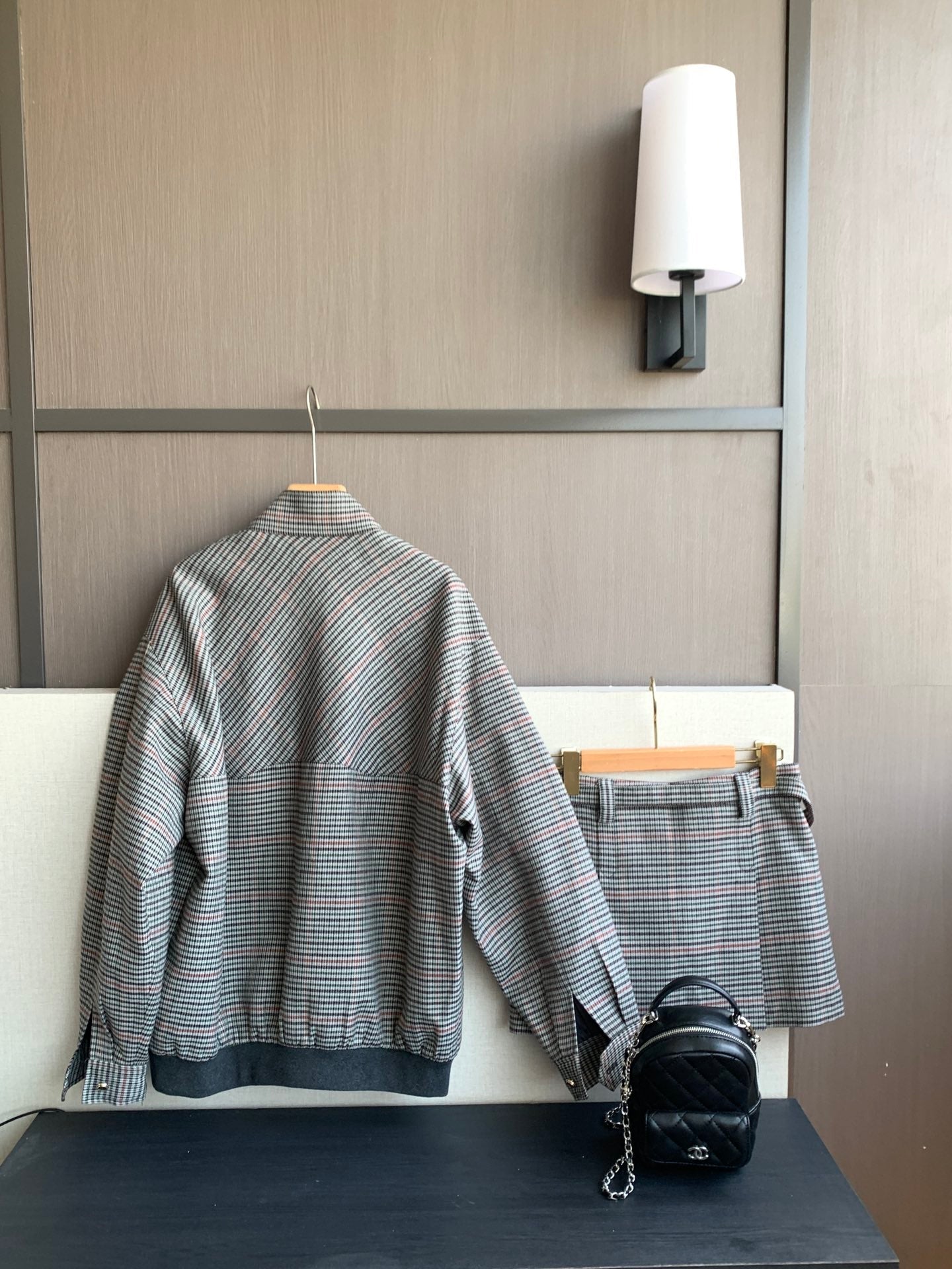 ! This short jacket features a sophisticated plaid print and sporty details. Stylish and decorated with embroidered logos, it shows a classic style. Paired with the same skirt, it is sweet and cool, and the custom metal buckle belt is super beautiful!