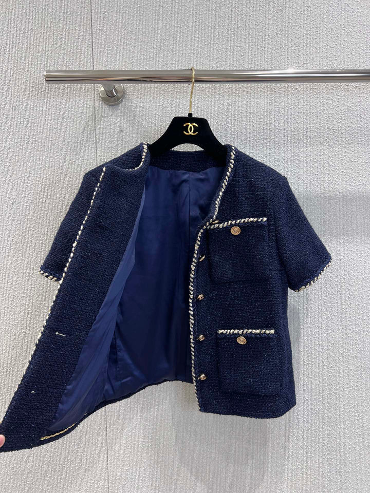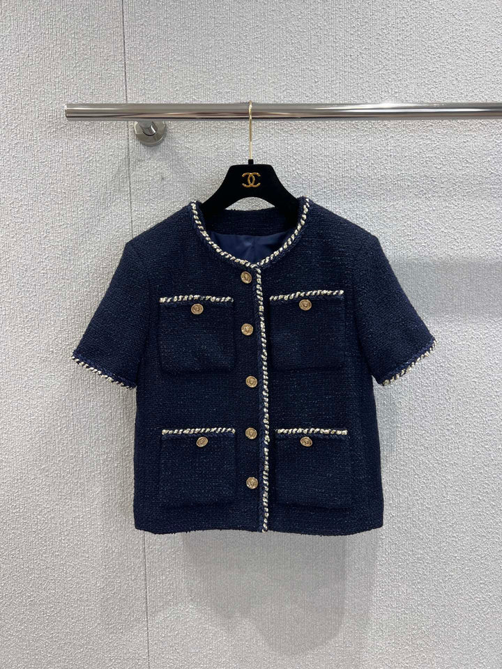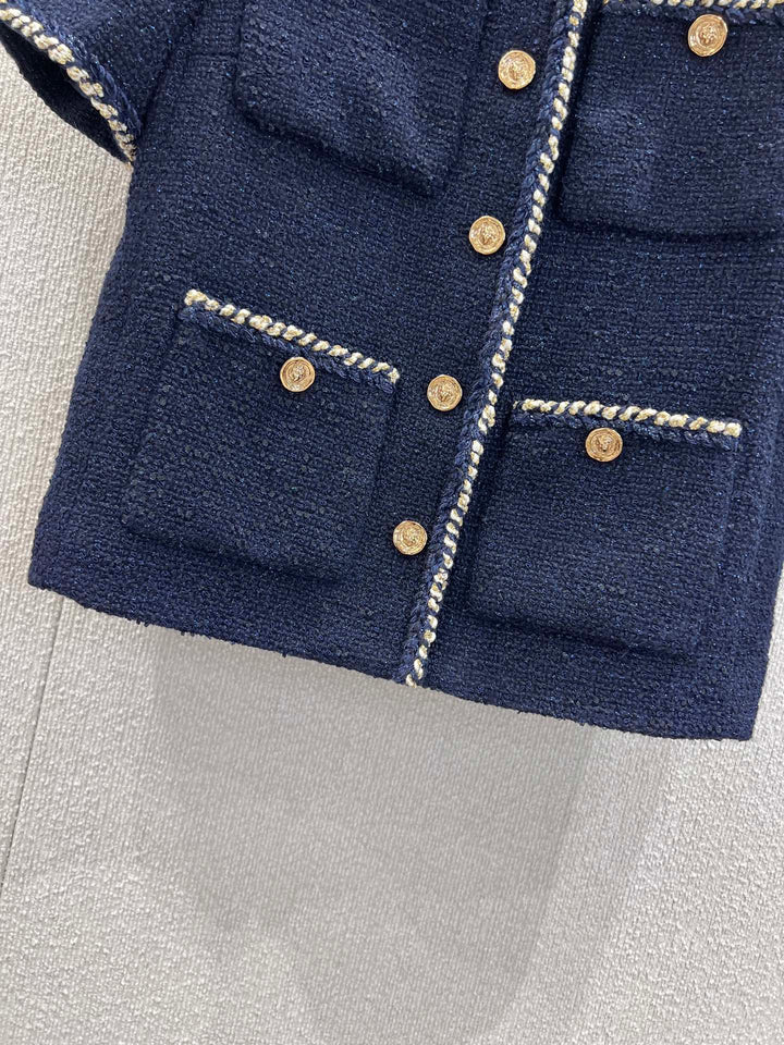 The texture of the woolen material is obvious, and the woolen material is visible to the naked eye. The high-quality coarse checkered woolen fabric creates a model of socialite style. The front placket has a single row of heavy-duty printed round buttons ➕ Exquisite weaving texture, exquisite weaving feeling, and tied edges extending from the collar to the front, echoing the upper edges of multiple pockets, highlighting the brand's taste, lively and jumping, yet elegant and rich in design layers. The upper body exudes a fashionable and sophisticated temperament, making it the preferred choice for dressing.