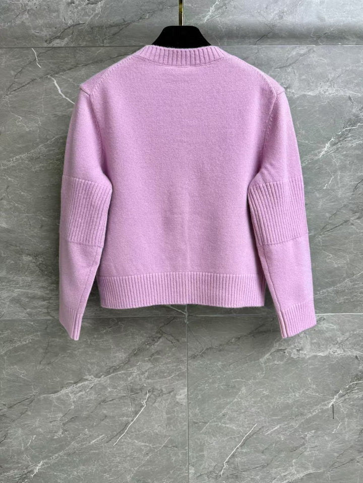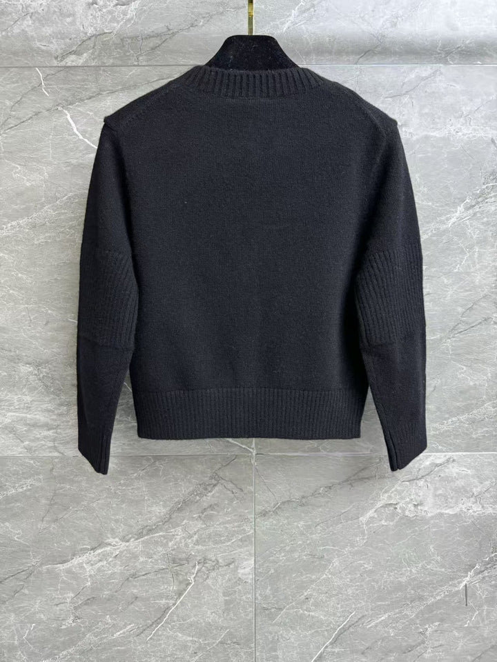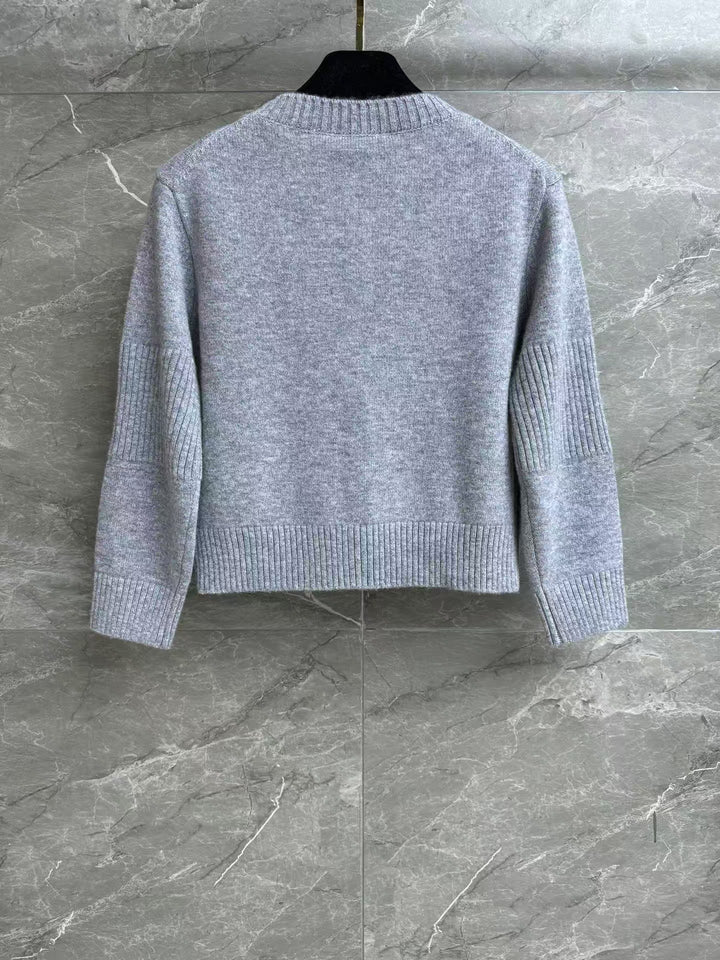 Round neck ribbed neckline CC bag buckle decoration embellishment Retro simple and advanced Cashmere blended fabric Thick, soft and comfortable Short version Makes the upper body look slim and elegant.