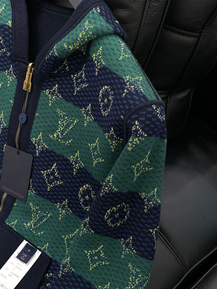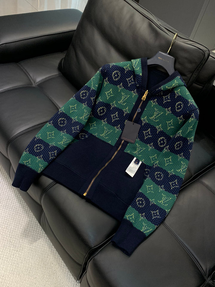 Fashionable casual hooded sweater with knitted cardigan on both sides, very distinctive on the upper body! Eye catching and eye-catching, imported original fabric, top-notch knitting craftsmanship letter pattern decoration, original hardware accessories decoration, simple yet fashionable, classic and atmospheric, comfortable and breathable, handsome and stylish upper body.
