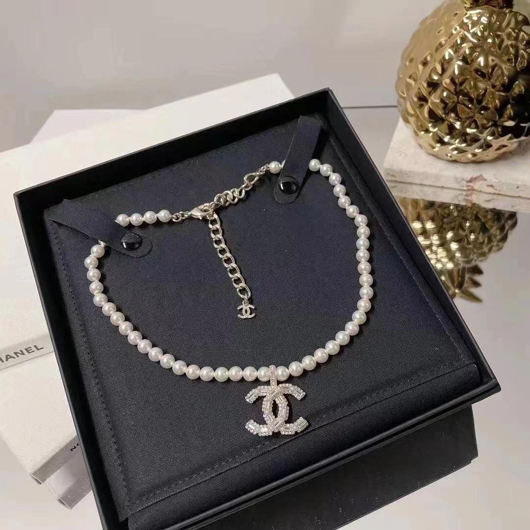 New pearl and diamond logo necklace