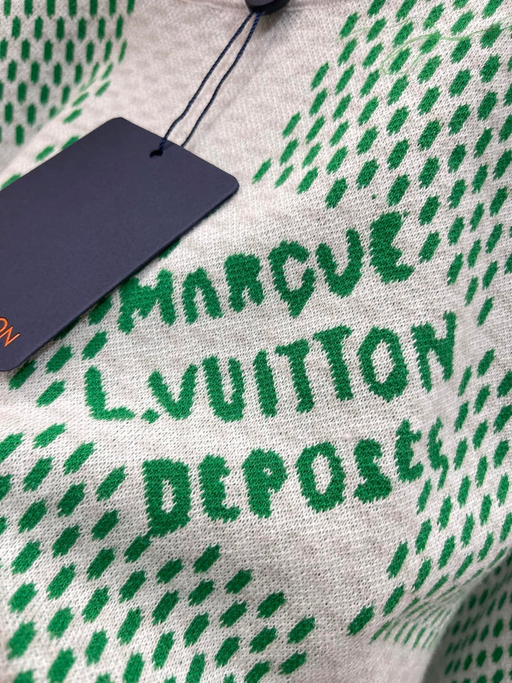 Checkerboard knit long-sleeve sweater
