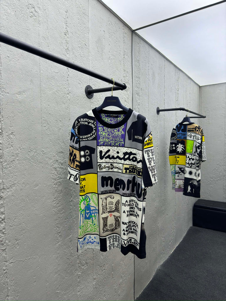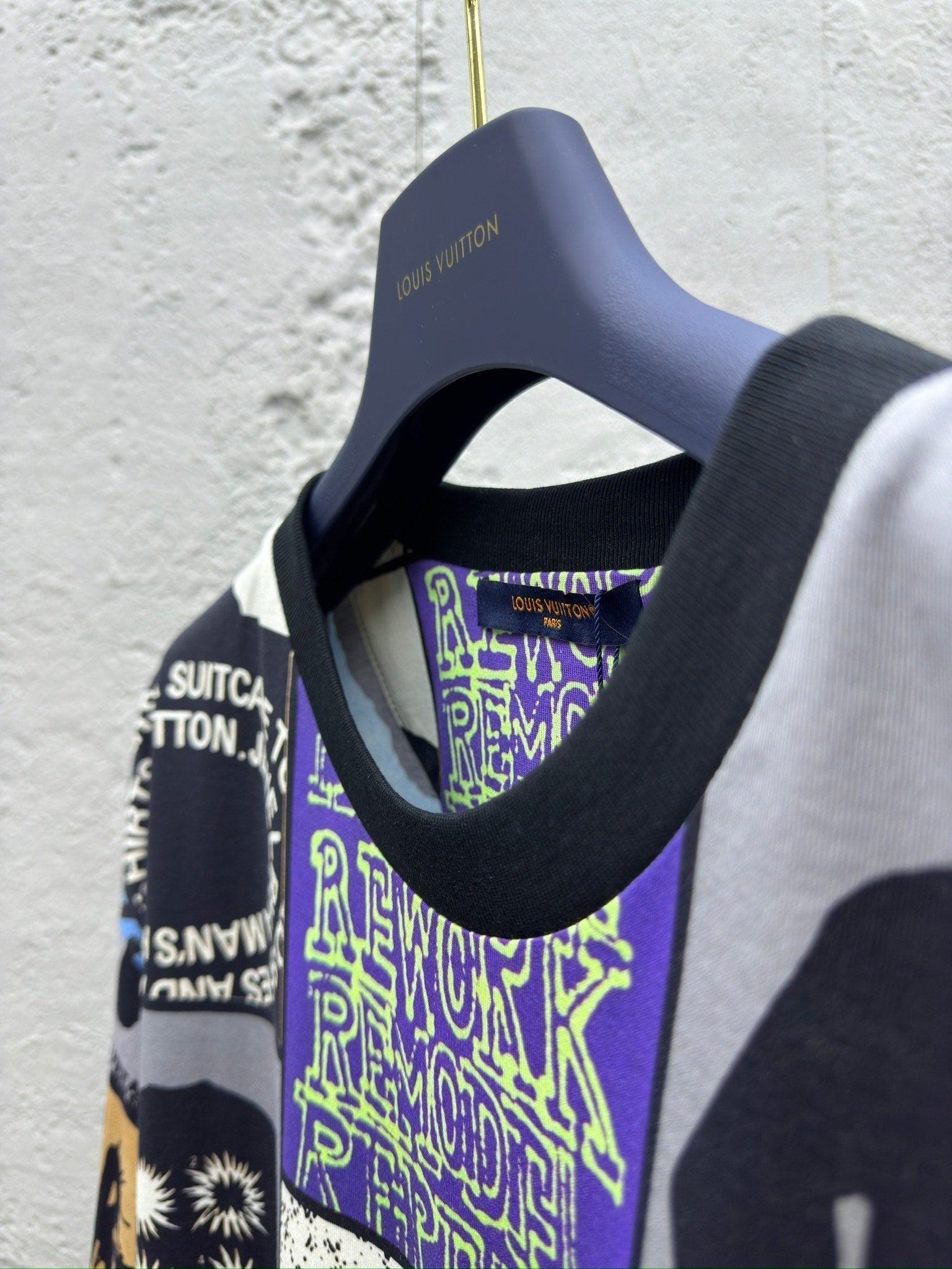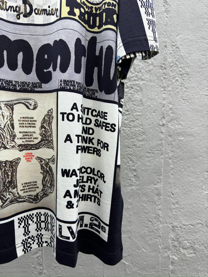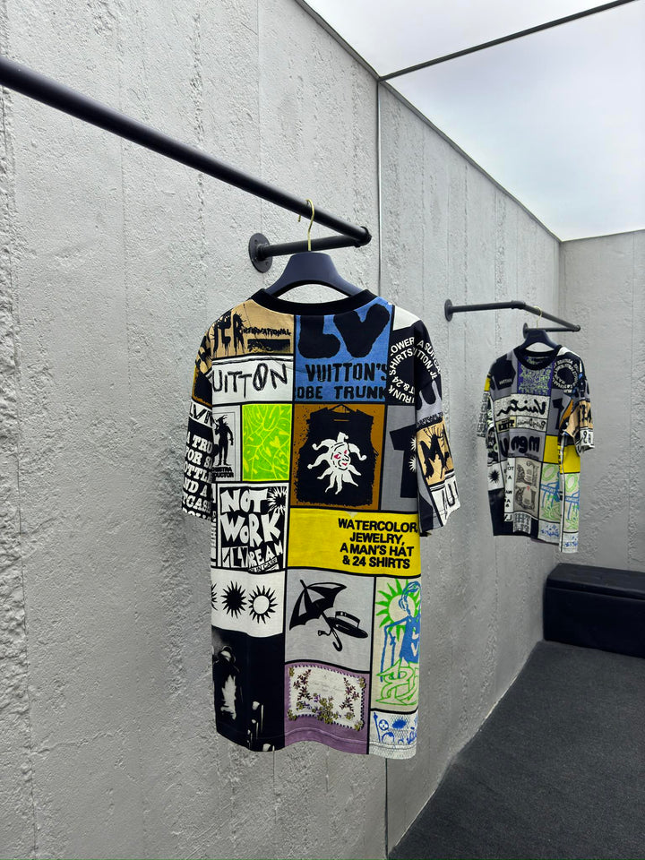 Made of 40s double-strand mercerized cotton plain fabric with a weight of 180g, the gray fabric is boiled in a vat to remove impurities and colored fiber cotton shells. No fluorescent whitening agent is added to make the finished non-fluorescent white semi-bleached base fabric. The fabric is made of active digital direct Inkjet printing process, scanning the Y version of the hand-painted printing draft, positioning the cut pieces and enlarging the size to make square rough patterns. The entire garment has 22 colors. It requires multiple pattern making to modify the pattern details and color adjustment. The color adjustment cycle takes nearly half of the time. Months, imported ink printing, later steaming and washing, shaping and shipping, laser infrared marking and manual cutting.It comes with 32s double yarn 1*1 cotton thread and a full set of matching wash mark accessories.