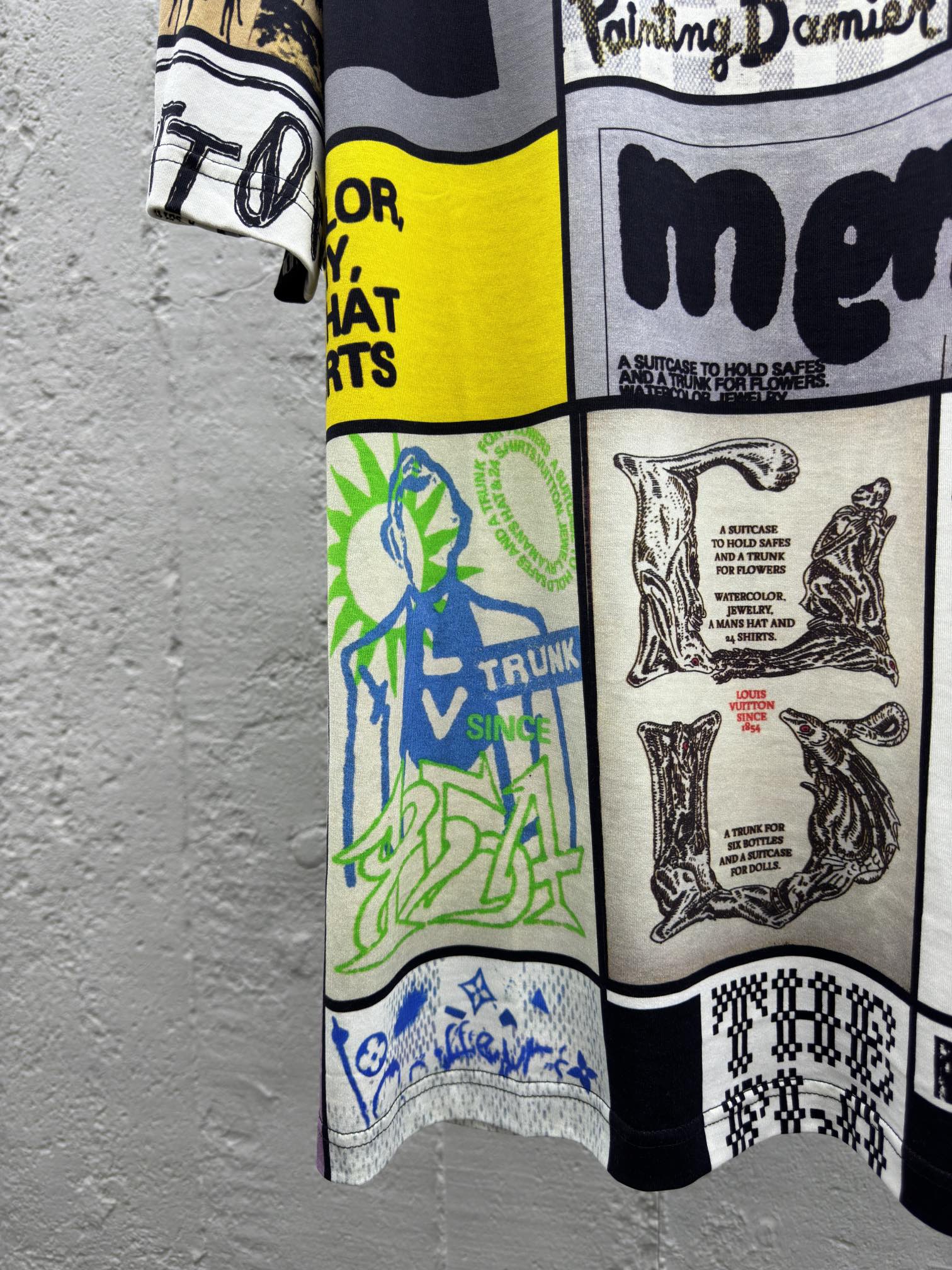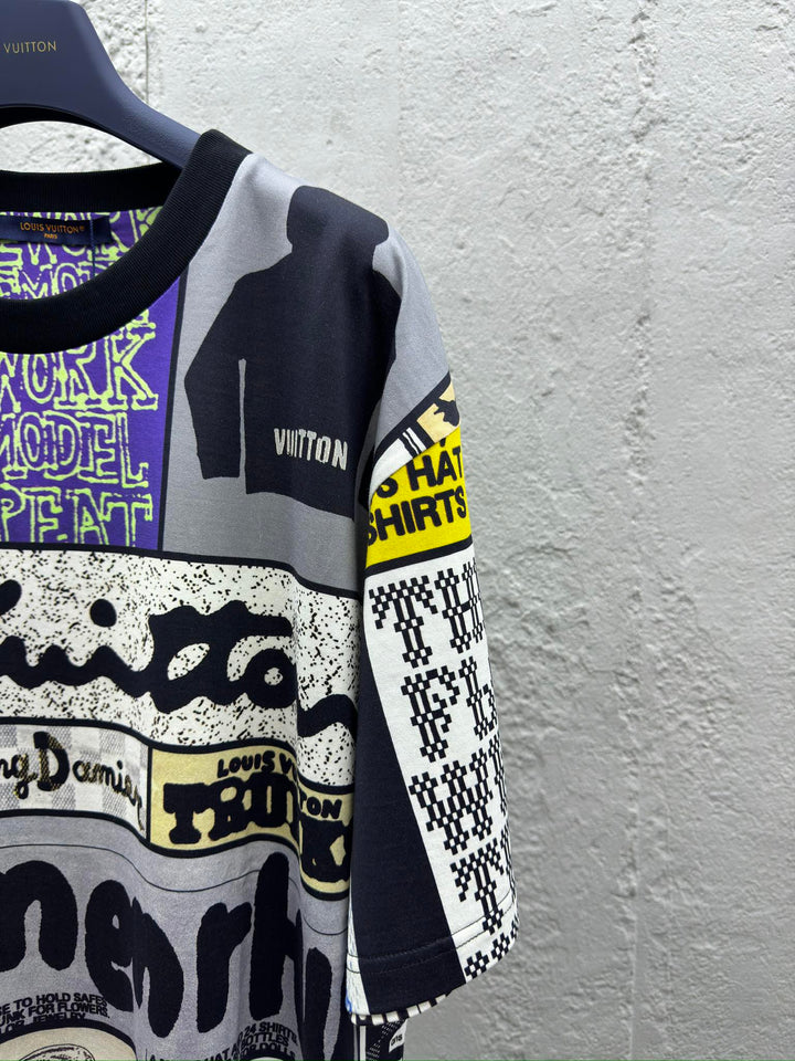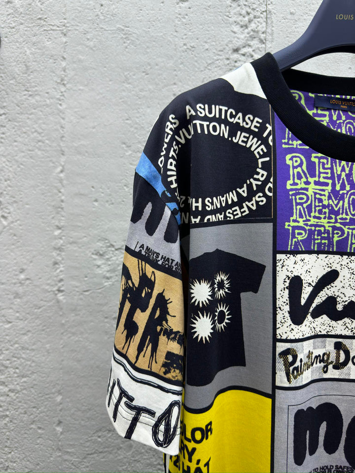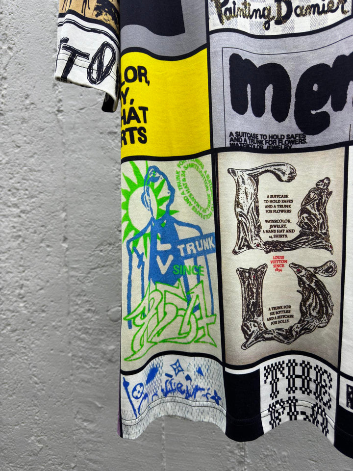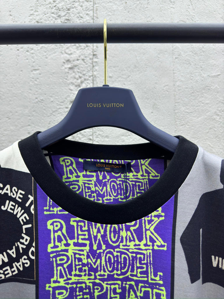 Made of 40s double-strand mercerized cotton plain fabric with a weight of 180g, the gray fabric is boiled in a vat to remove impurities and colored fiber cotton shells. No fluorescent whitening agent is added to make the finished non-fluorescent white semi-bleached base fabric. The fabric is made of active digital direct Inkjet printing process, scanning the Y version of the hand-painted printing draft, positioning the cut pieces and enlarging the size to make square rough patterns. The entire garment has 22 colors. It requires multiple pattern making to modify the pattern details and color adjustment. The color adjustment cycle takes nearly half of the time. Months, imported ink printing, later steaming and washing, shaping and shipping, laser infrared marking and manual cutting.It comes with 32s double yarn 1*1 cotton thread and a full set of matching wash mark accessories.