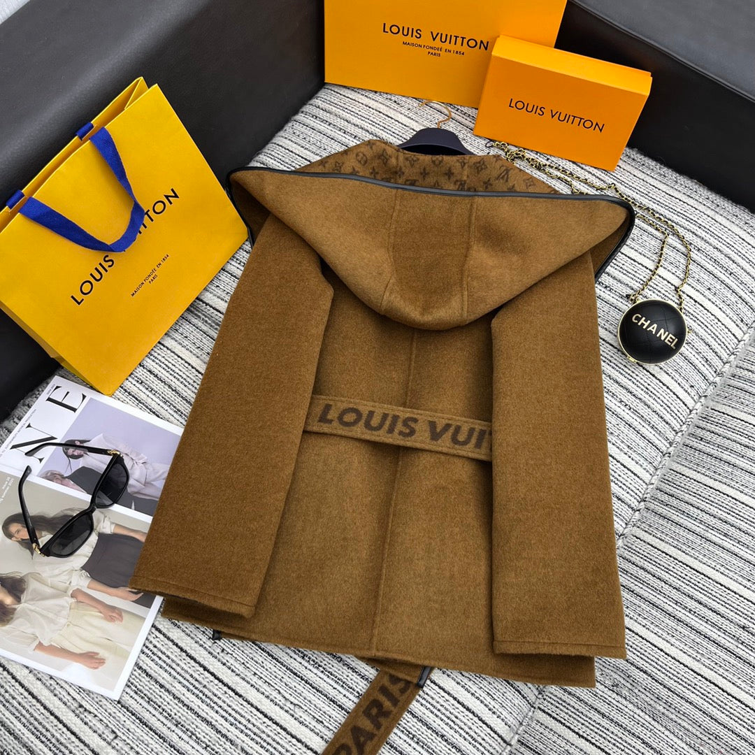 Classic caramel floral pattern hooded mid length coat with wool fabric and cotton sheepskin edging design.