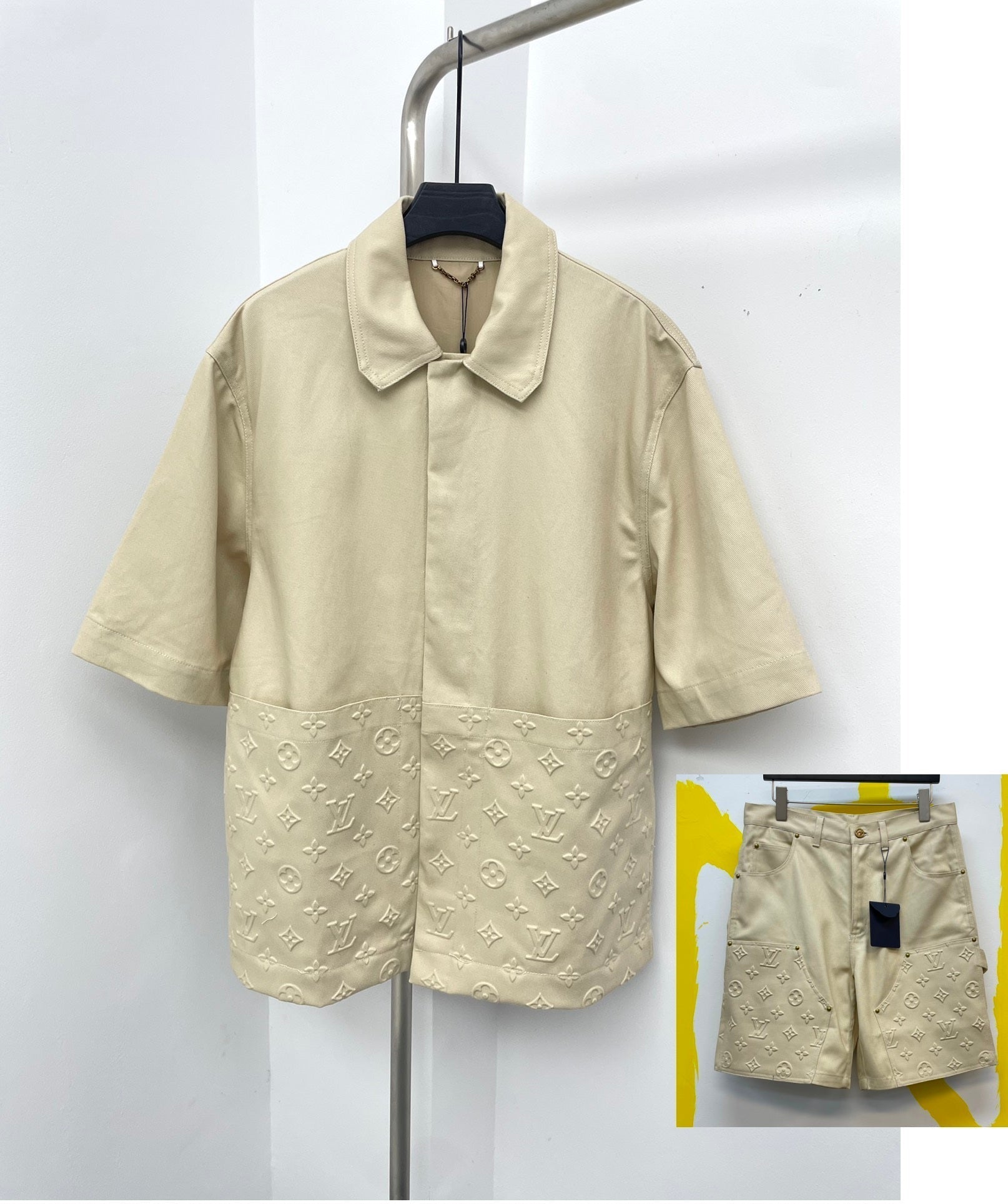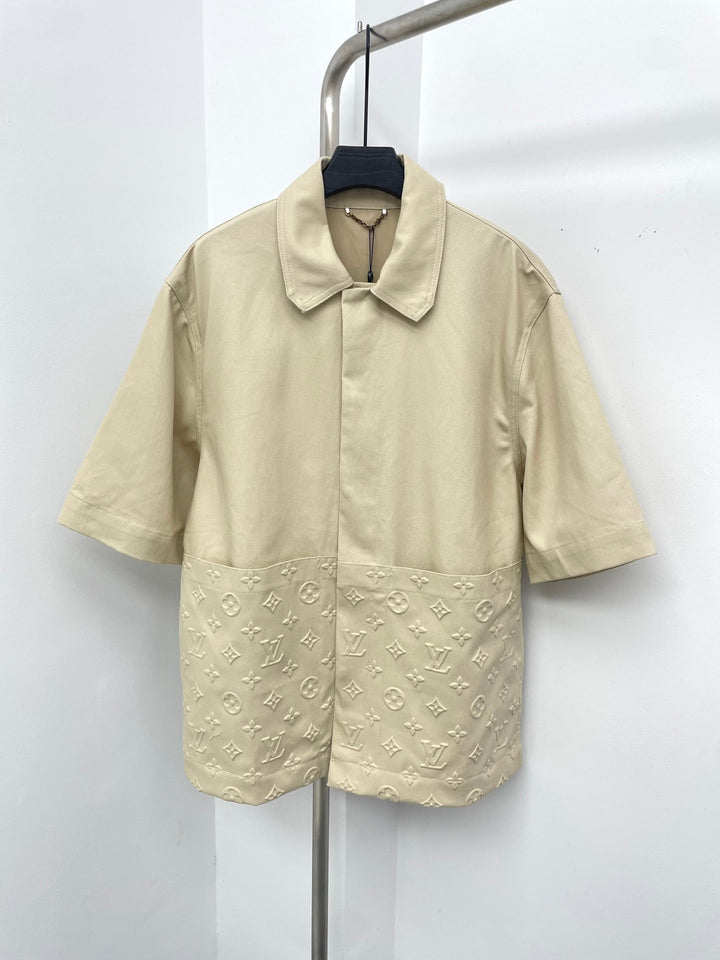Made of washed denim denim fabric, the overall appearance is straight and neat cut. Details: DNA square collar adds a casual feel, monogram embossed hem pockets, engraved hardware hidden buttons on the front, loose fit