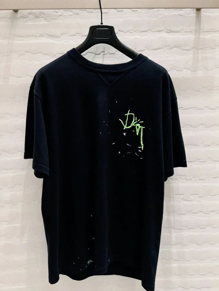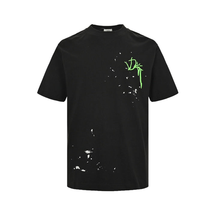 Co-branded logo embroidered splash-ink short sleeves