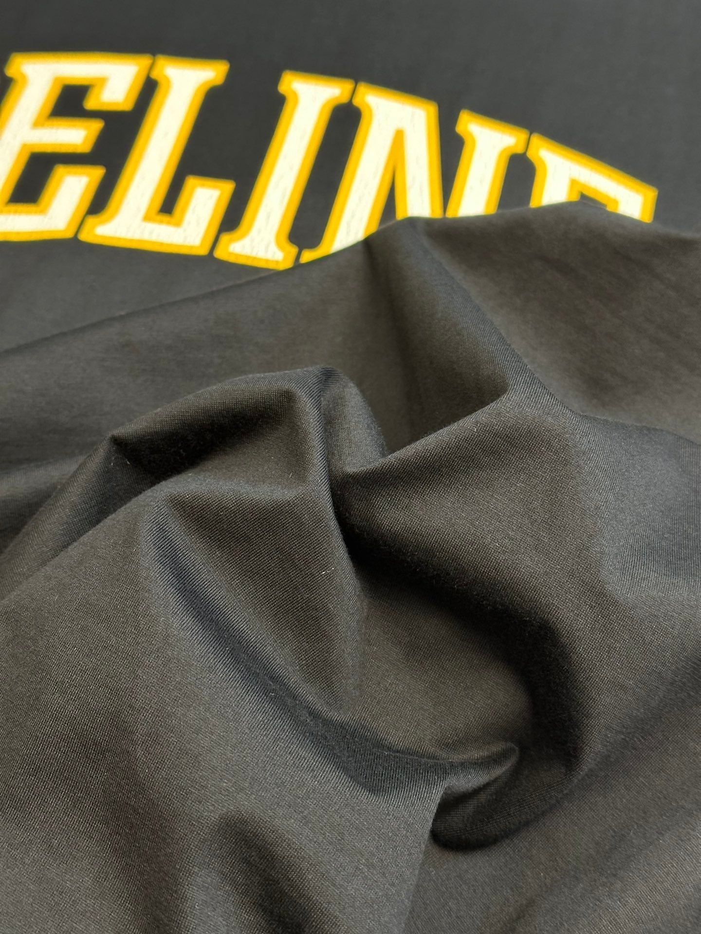 The fabric is made of 60s double-ply long-staple cotton plain fabric with a weight of 150g. The finished fabric is made of light etching process + mercerization process to increase the gloss of the fabric. The front panel is printed with hand-made platen screen printing, and the slurry is cracked slurry. Ready-made garments After multiple fermentation washes to test the printing fastness, the printing pattern showed horizontal and vertical cracks as the fabric stretched.