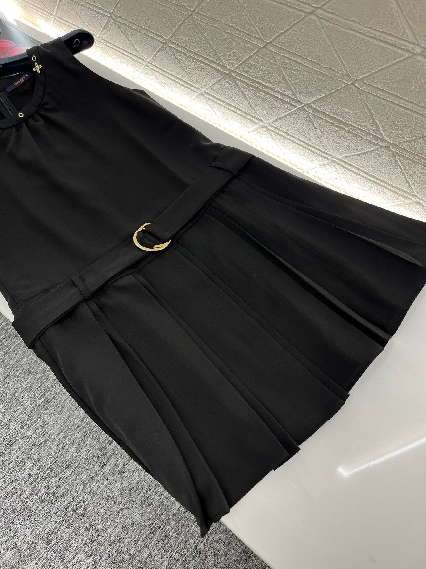 Breathable and smooth fabric, comfortable UP flower hardware inlaid pleated skirt