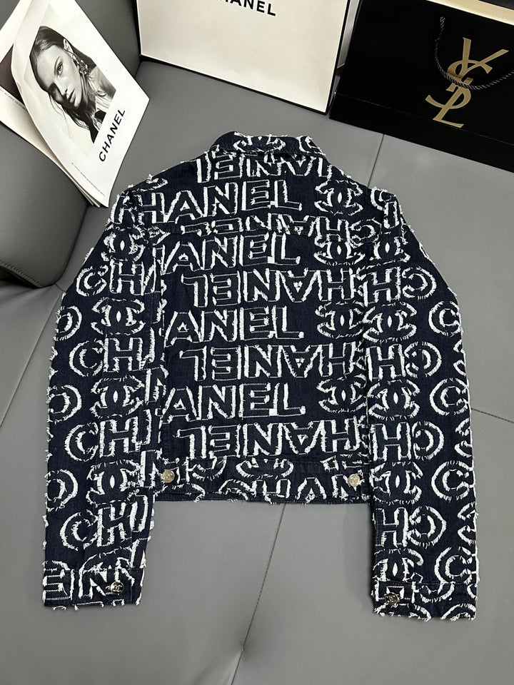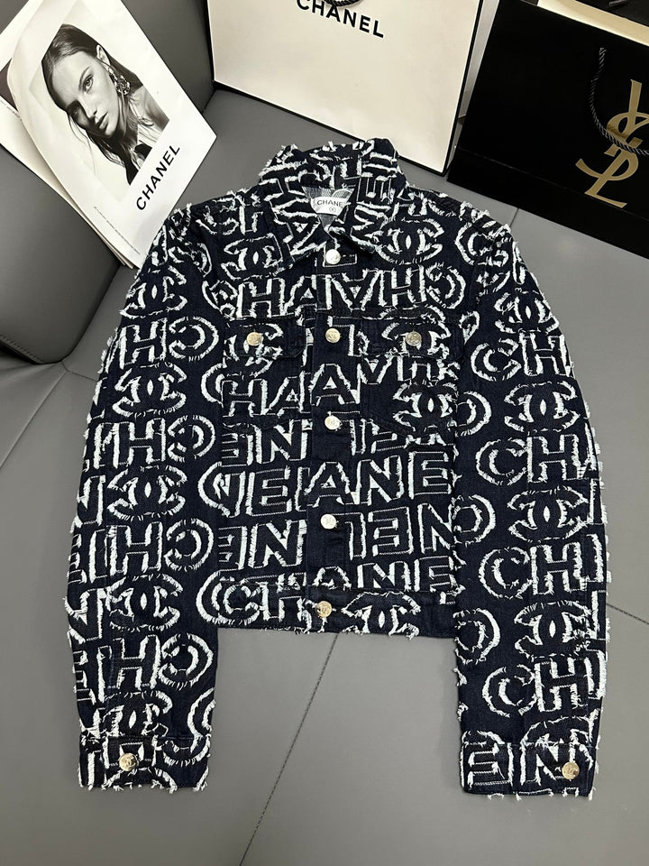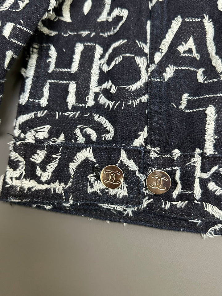 Denim jacket with full-print letters