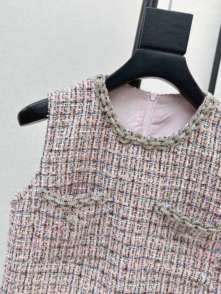 The fabric comes with a textured texture. Heavy duty diamond jewelry refracts with light and has a fine luster. The upper body exudes a sense of luxury, which can be worn on dates and commutes. The hem is spliced with a hundred pleats, exquisite and sweet, perfectly interpreting gentleness and elegance. The gold color is available for sale in stock.