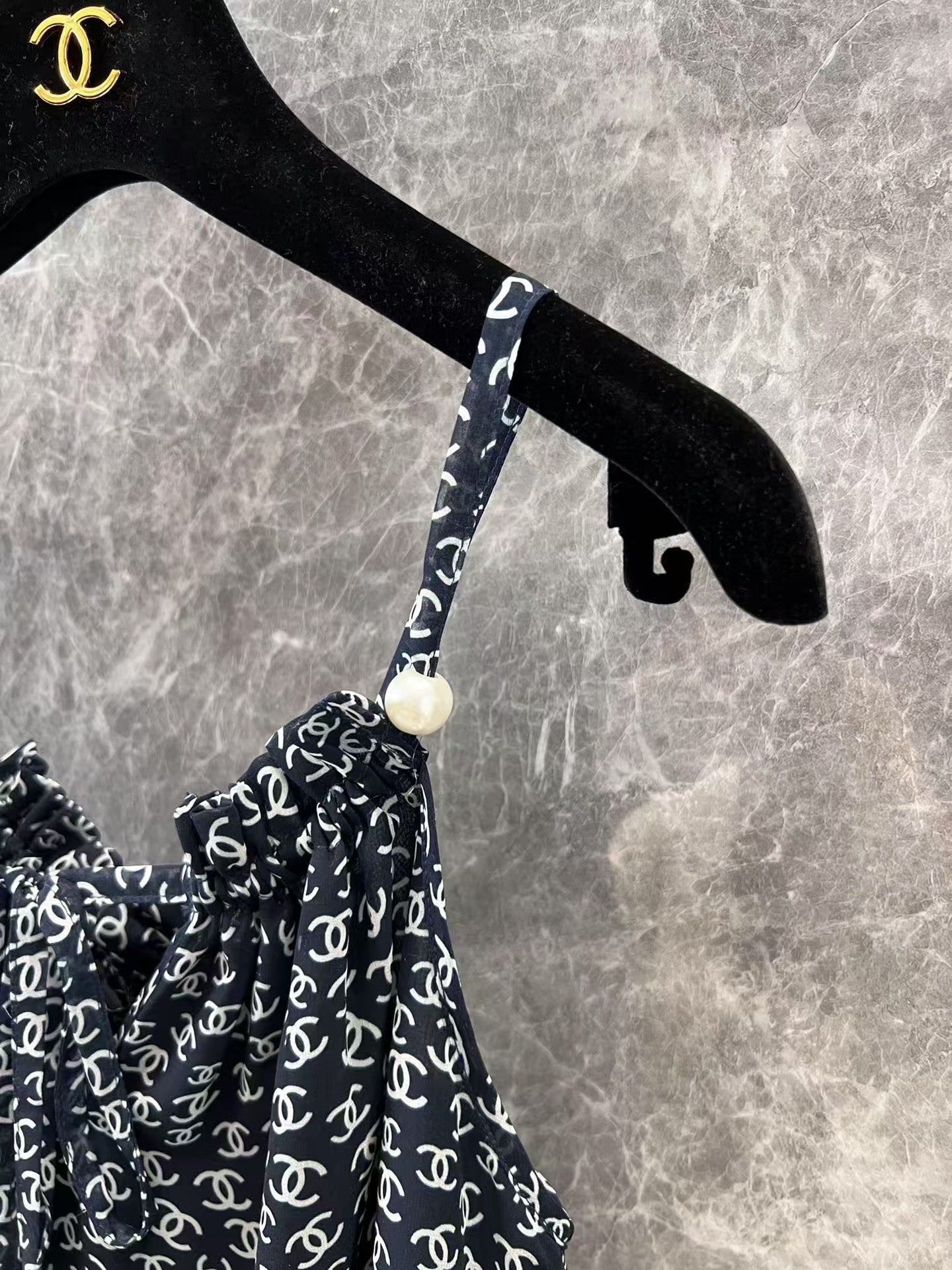 New spring and summer style Double C full-print camisole top | Spaghetti-shoulder camisole cut with halter neck design to form a central pleat at the neckline. Fits the chest line design to reveal the charming clavicle and modify the shoulder line. The garment uses active printing technology to present a full-width double C pattern. It is very sweet and shows the brand style. A must-have eye-catching outfit for vacation dates