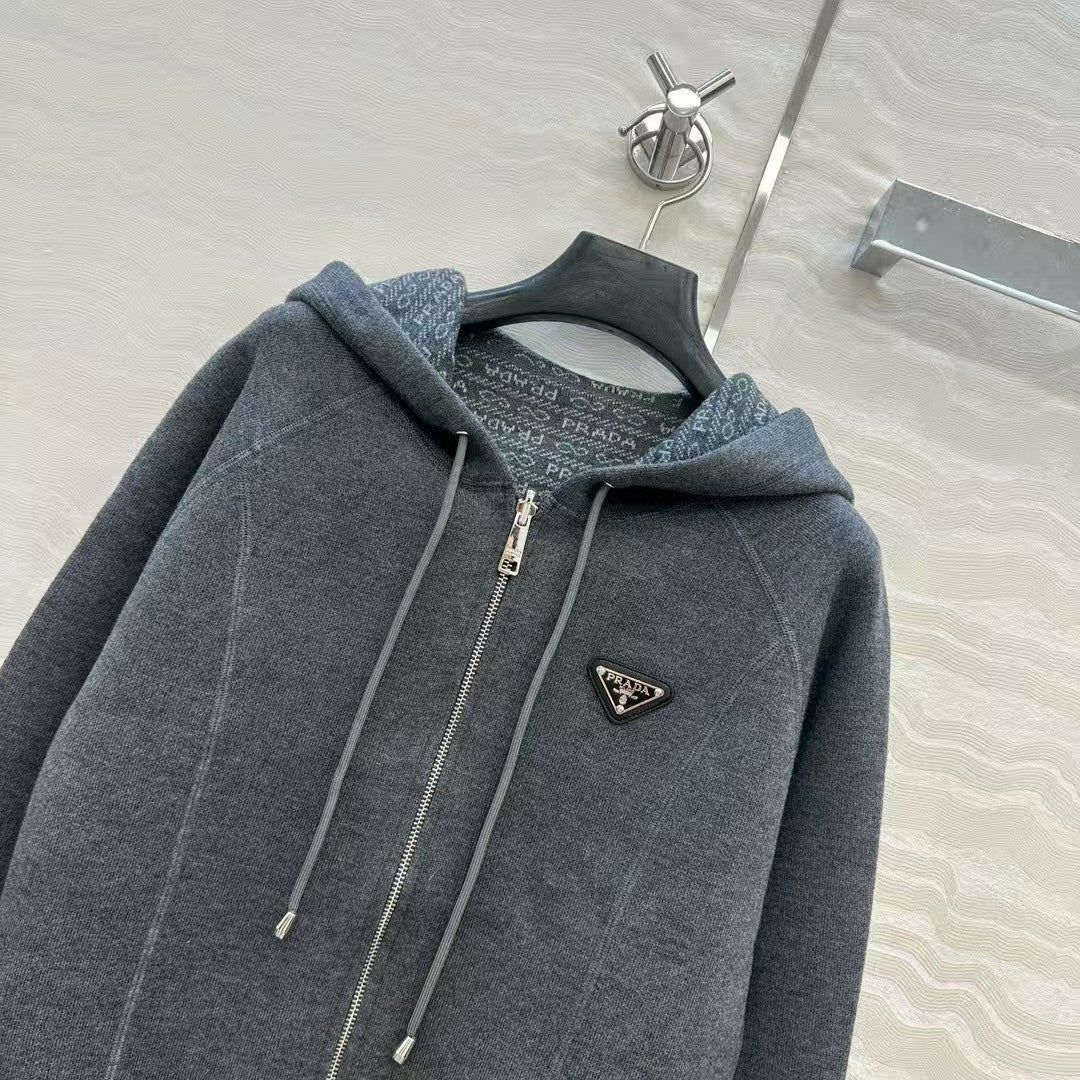 Original quality PR monogram double-faced wool hooded jacket. The hooded, double-pocket design makes for a youthful, youthful look! The classic silhouette is stylish and sophisticated! The reversible jacquard logo design is reversible. Made from premium imported wool yarn, it's incredibly strong and textured, creating a stylish, effortless look that's sure to go with everyone!