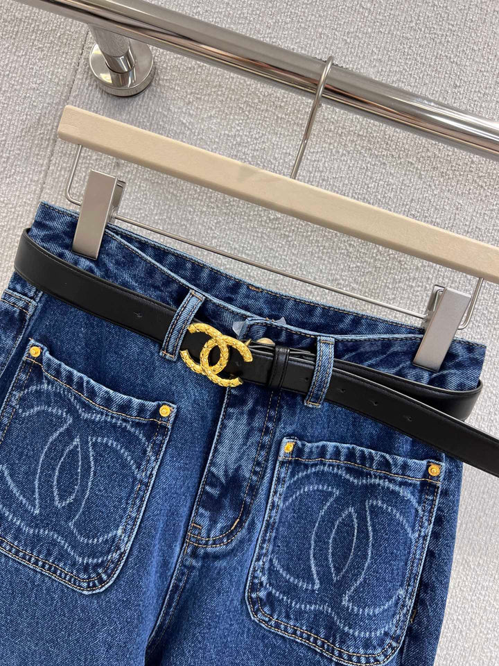Double pocket decorative jeans [with belt]