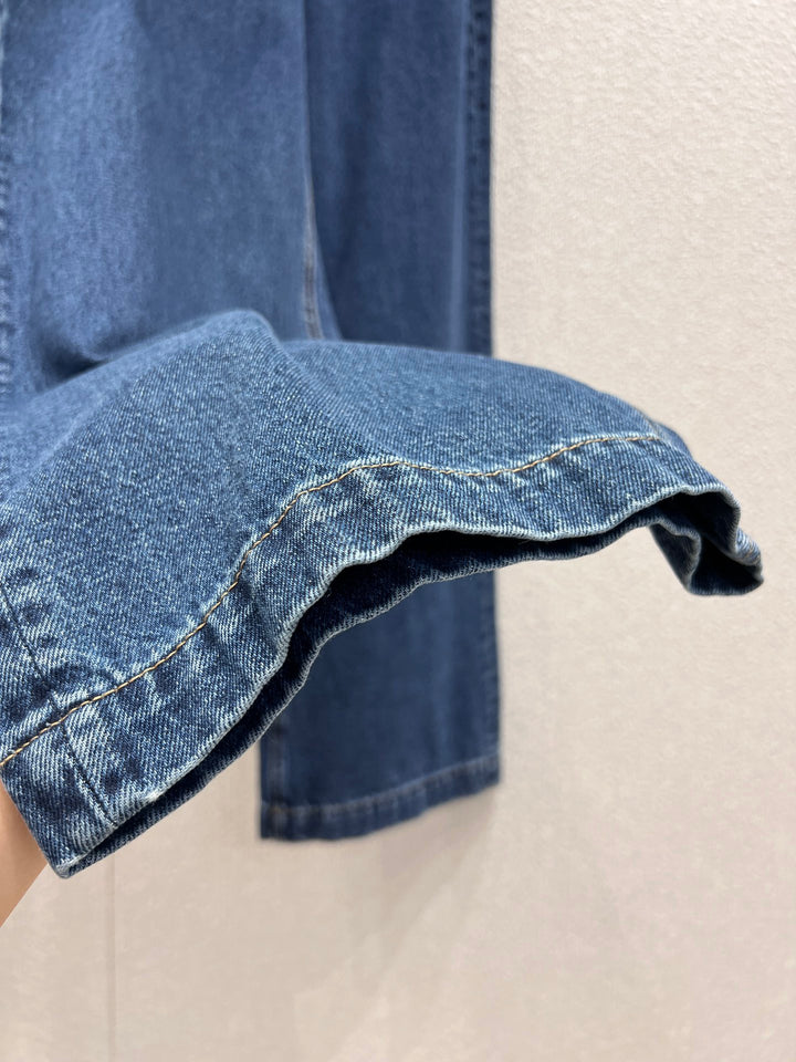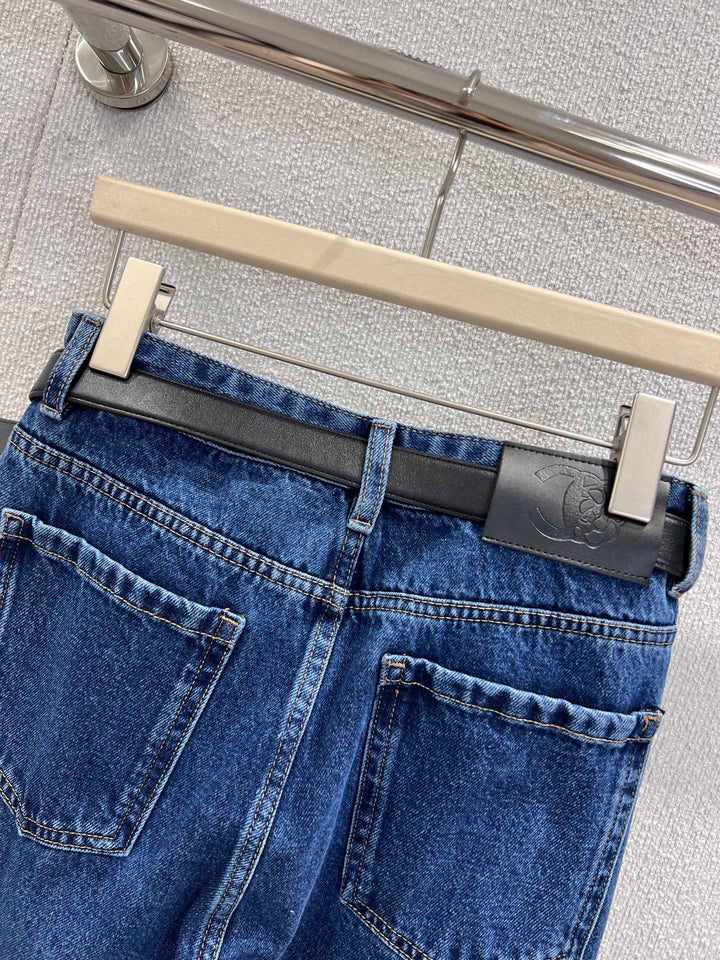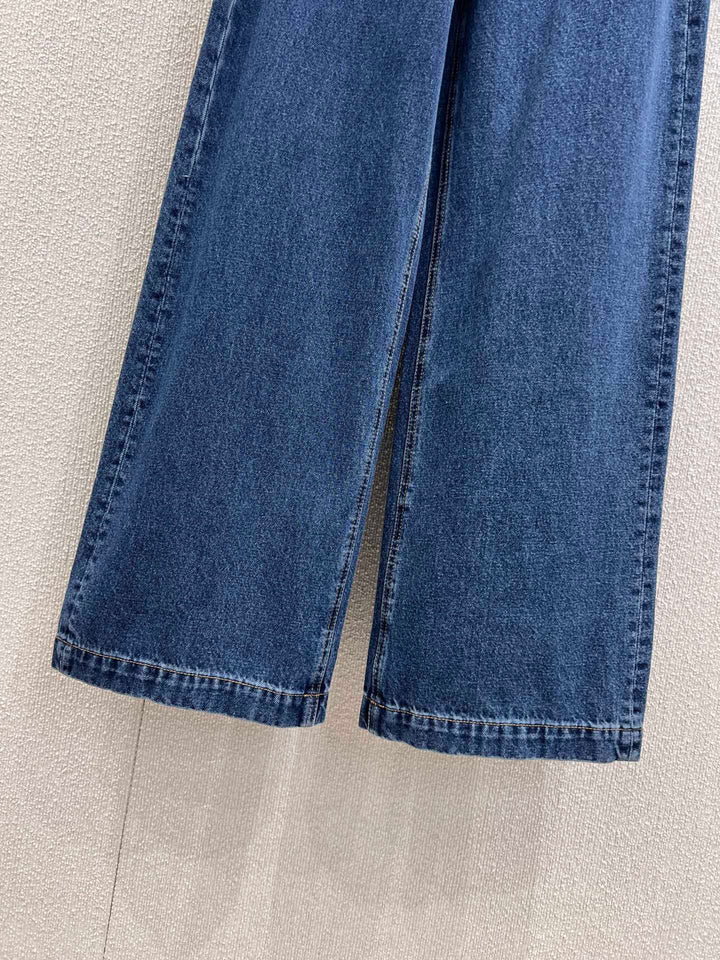Twill cotton denim material, craftsmanship, washing treatment, presenting a three-dimensional OEM pattern, elegant and stylish, straight leg pants cut with bone lines complementing each other, zipper pocket highlighting waist lines, fashionable and eye-catching, suitable for daily commuting π