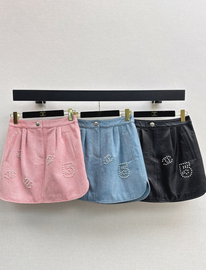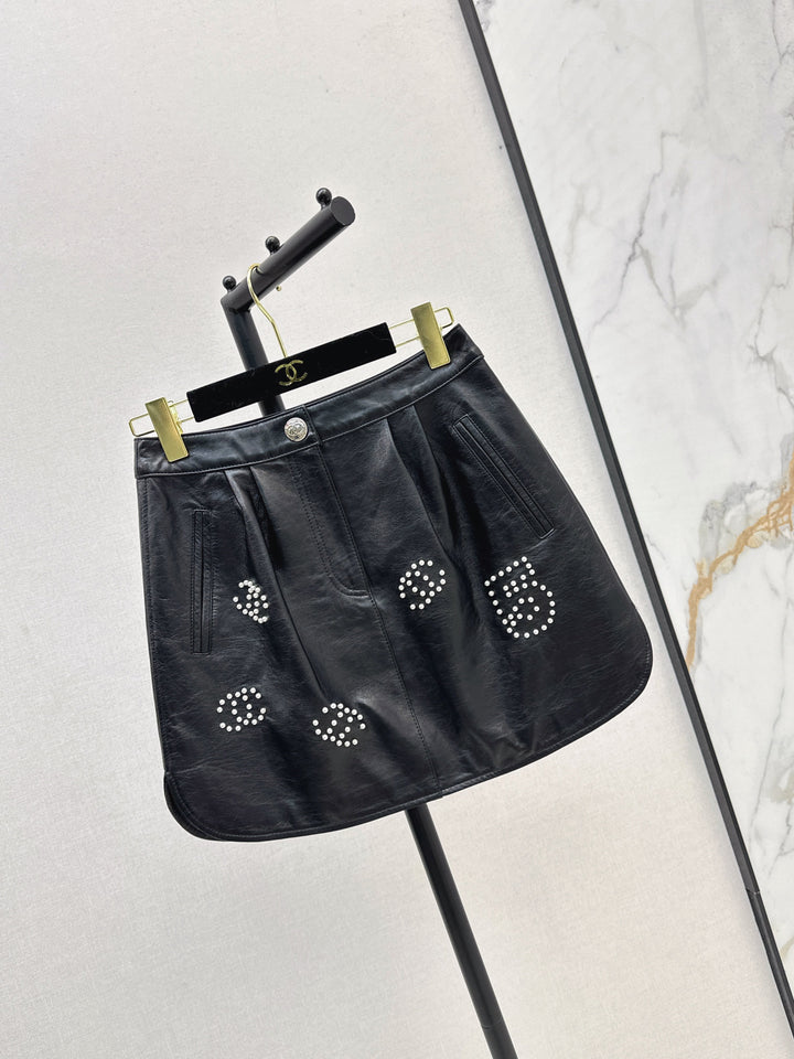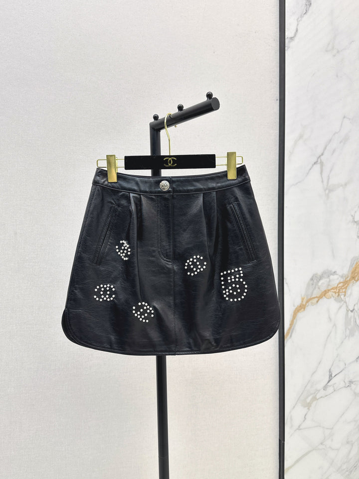 Flip collar short jacket paired with half skirt Coco girl's personalized outfit with classic sheepskin fabric, not picky.