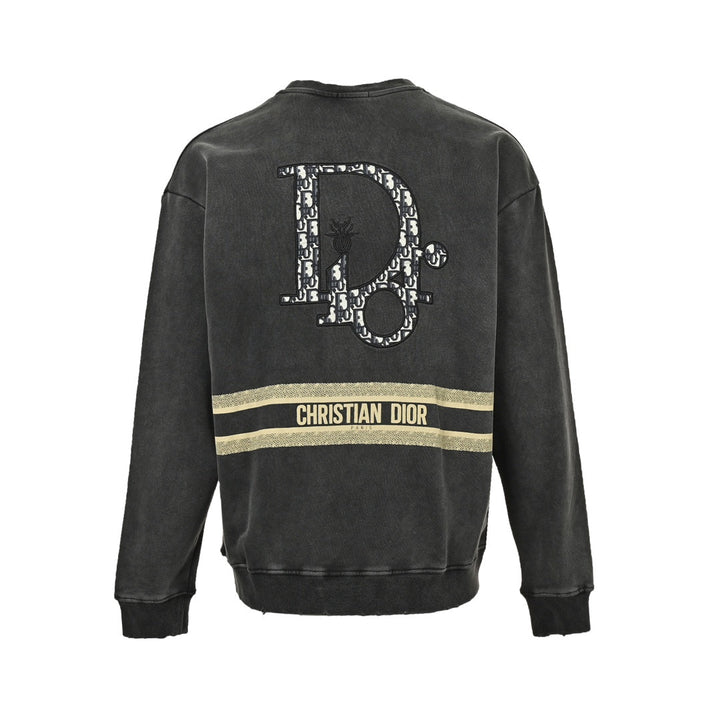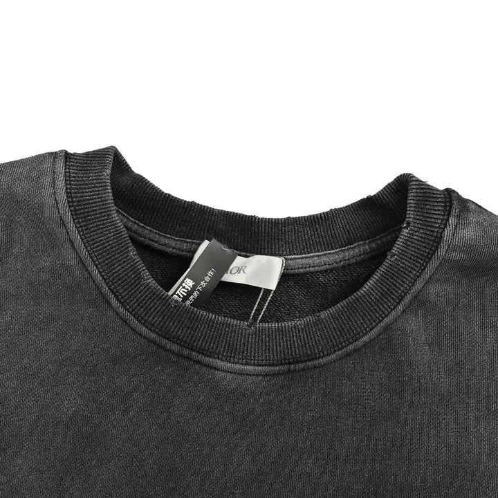 Embroidered logo washed crew neck sweatshirt