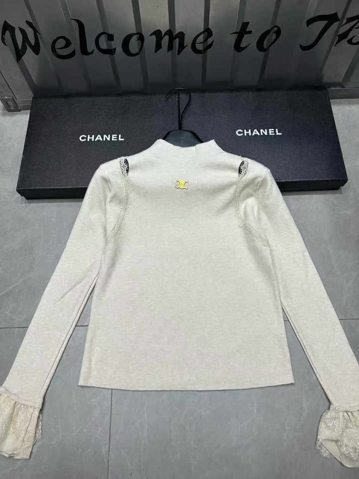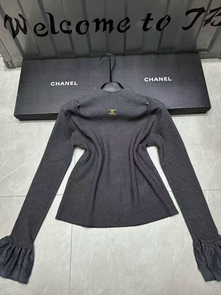 Grey lace sleeve base shirt