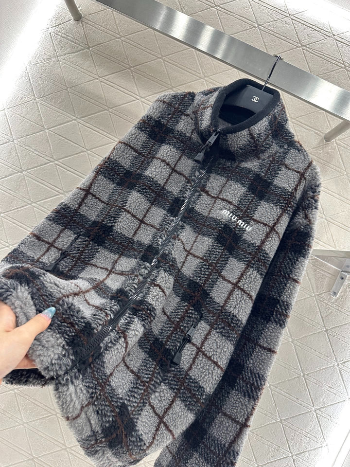 The whole body is decorated with teddy wool material, which is soft and comfortable in texture, fashionable and western-style. The stand up collar jacket is cut, and the front zipper is used ➕ The chest letter logo decoration showcases the brand's style. The whole body is composed of a grid pattern with black, white, and gray stripes, creating a perfect appearance and high-end fashion. The teddy wool has a soft and fluffy texture, and the drawstring adjusts the elasticity for comfort and warmth. It is the first choice for autumn and winter wear, with a fashionable and stylish style.