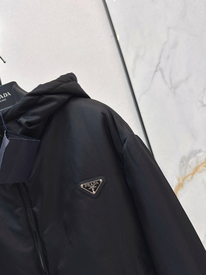 Imported recycled nylon fabric, metal triangle logo, low-key yet fashionable classic hooded baseball jacket, with a British style design that is versatile, handsome, lightweight, and warm. Available in two colors in stock. SML