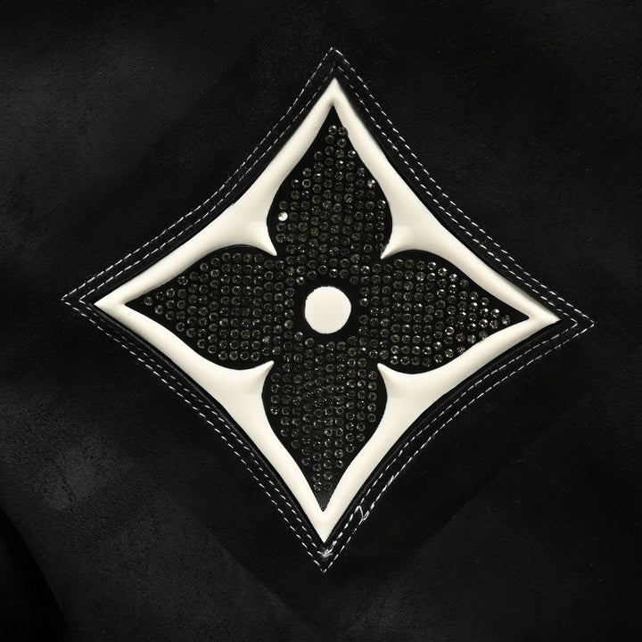 Hot rhinestoned four-leaf clover logo suede baseball jacket