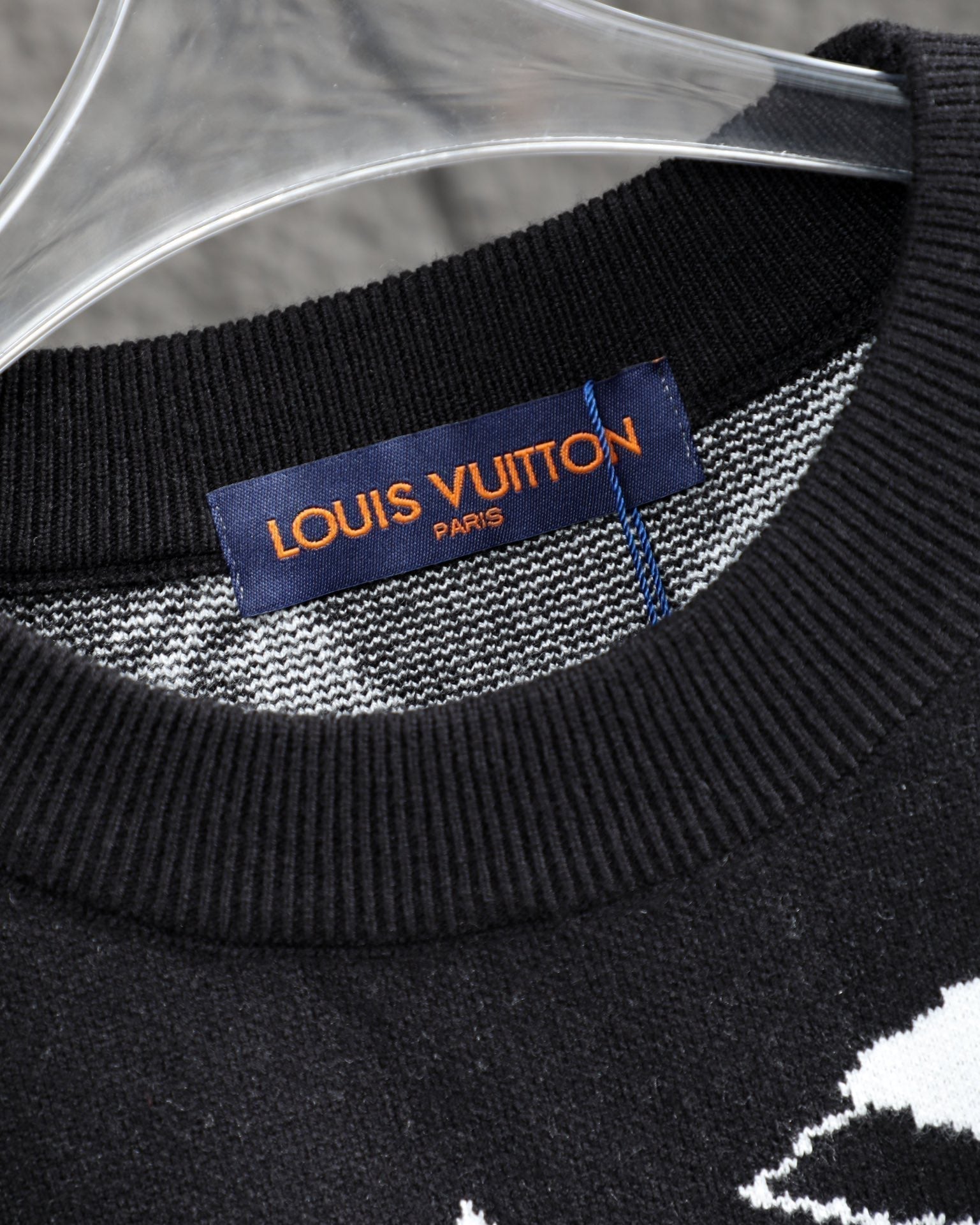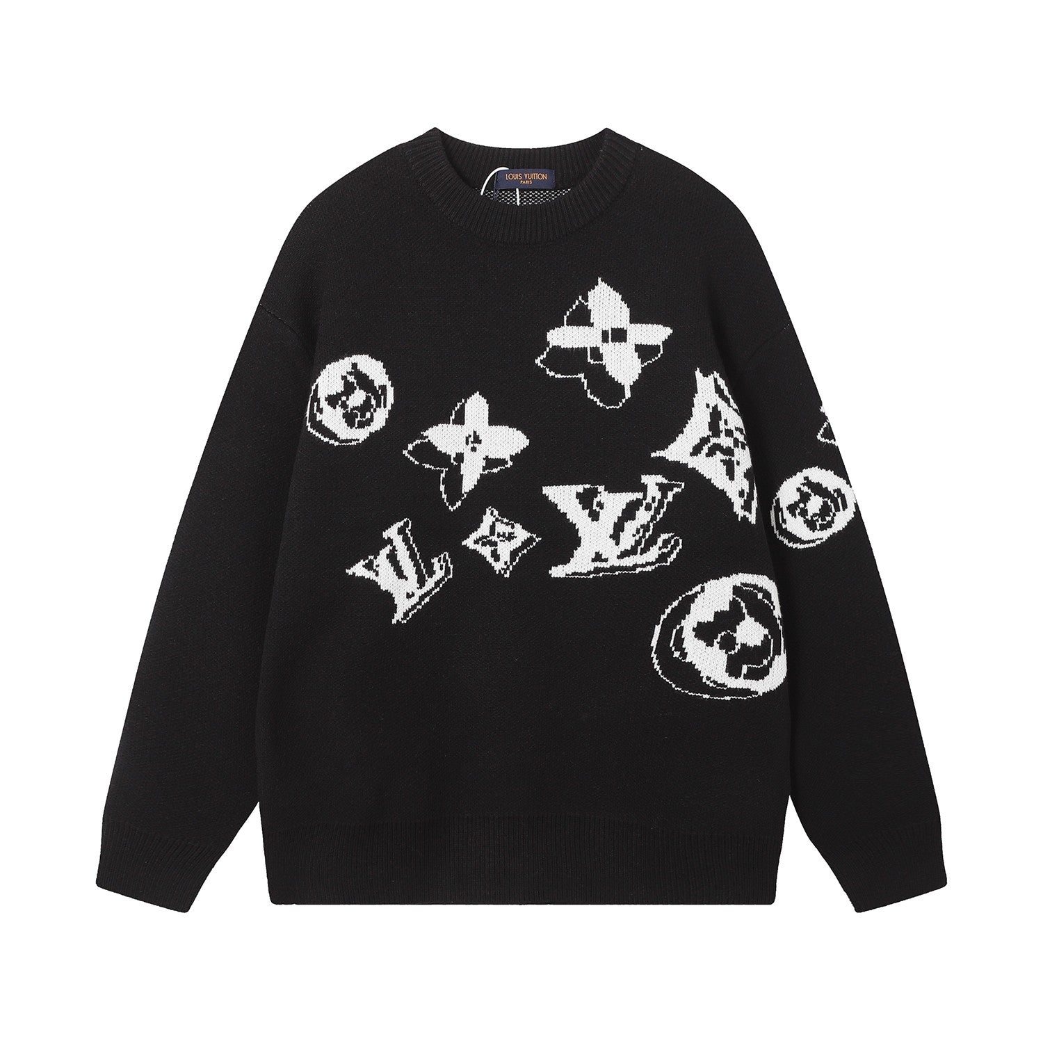 L jacquard all-over casual crew neck sweater