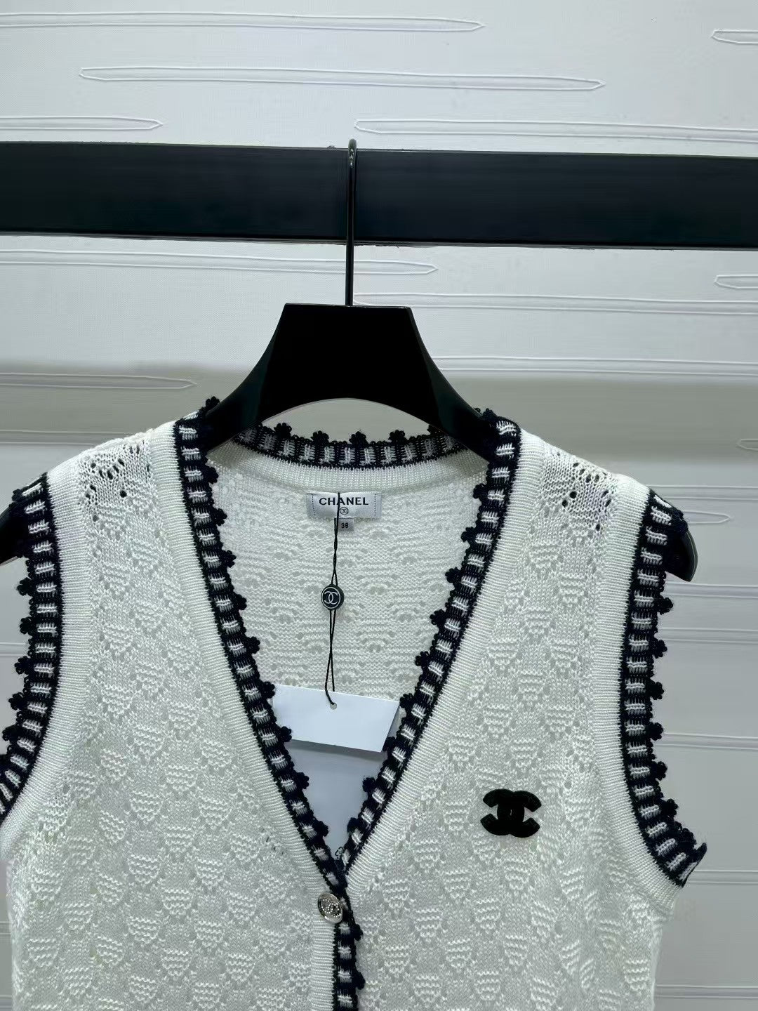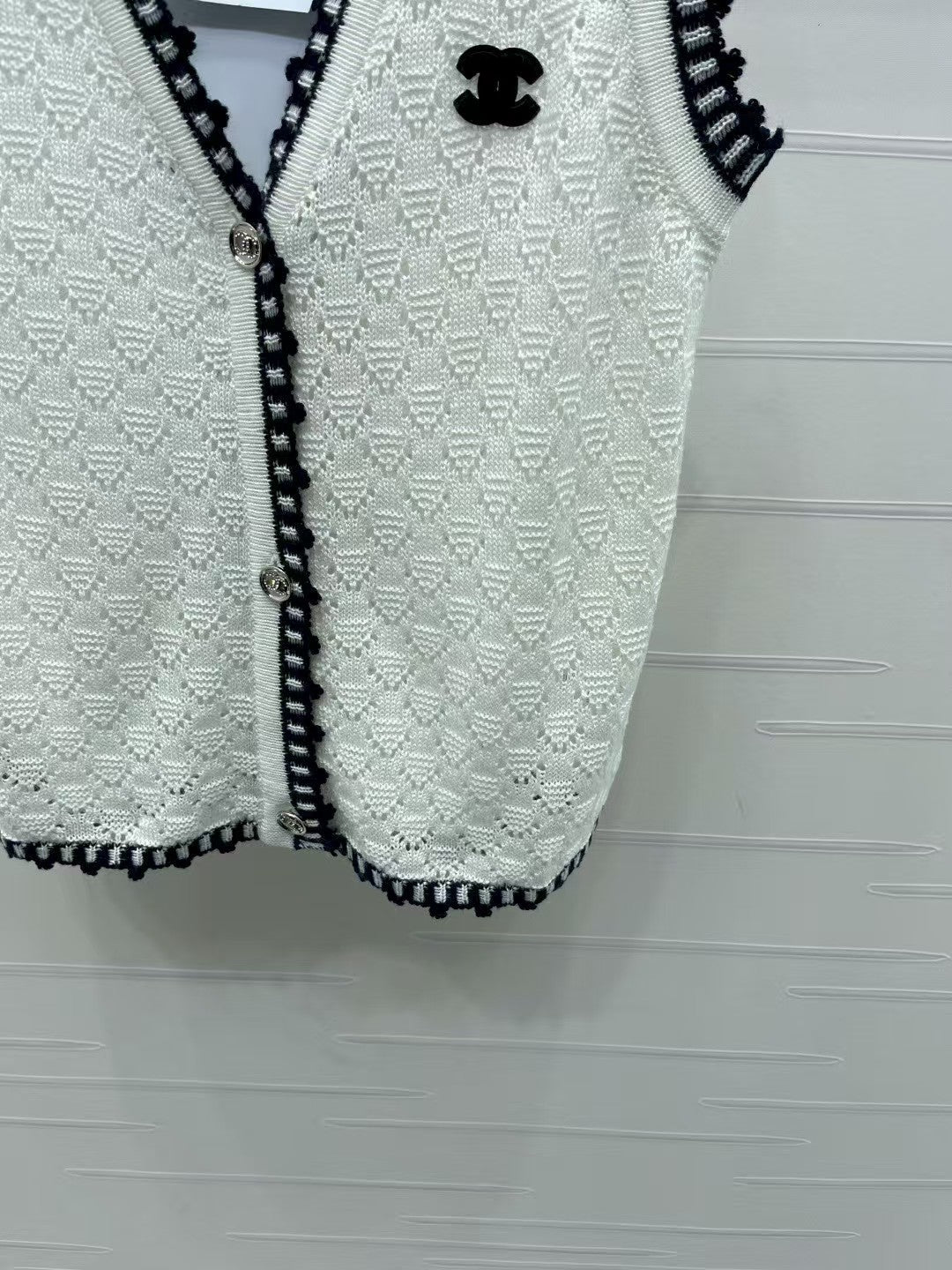 Lace-trimmed knitted vest