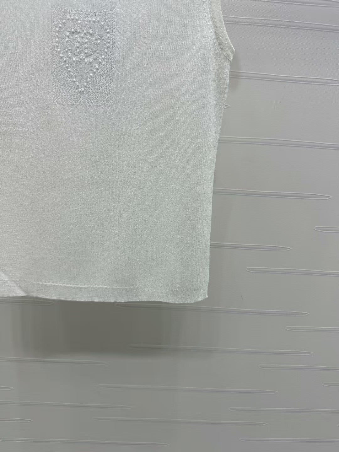 The latest collection of 2025 early autumn! Slim fit knitted vest! Customized cotton yarn weaving, stretchable and comfortable, breathable and easy to wear. Round neck knitted vest cut, double dark logo on the chest, exquisite and fashionable heart pattern around the outer layer, slim fit with vertical pit strip texture, visually slimming and highlighting the figure, playful style and age reduction, richer layering effect, easy to control for daily travel or parties!