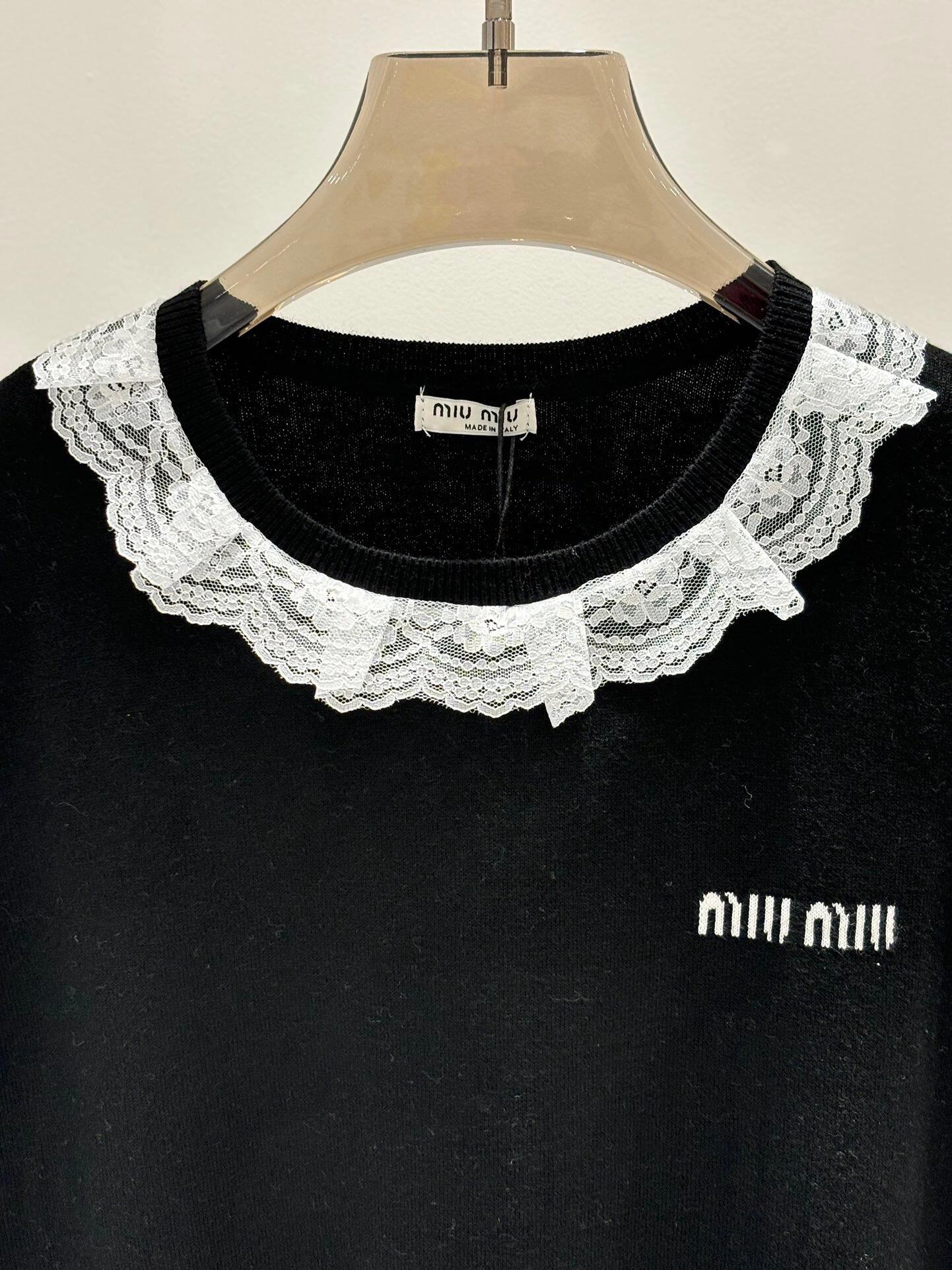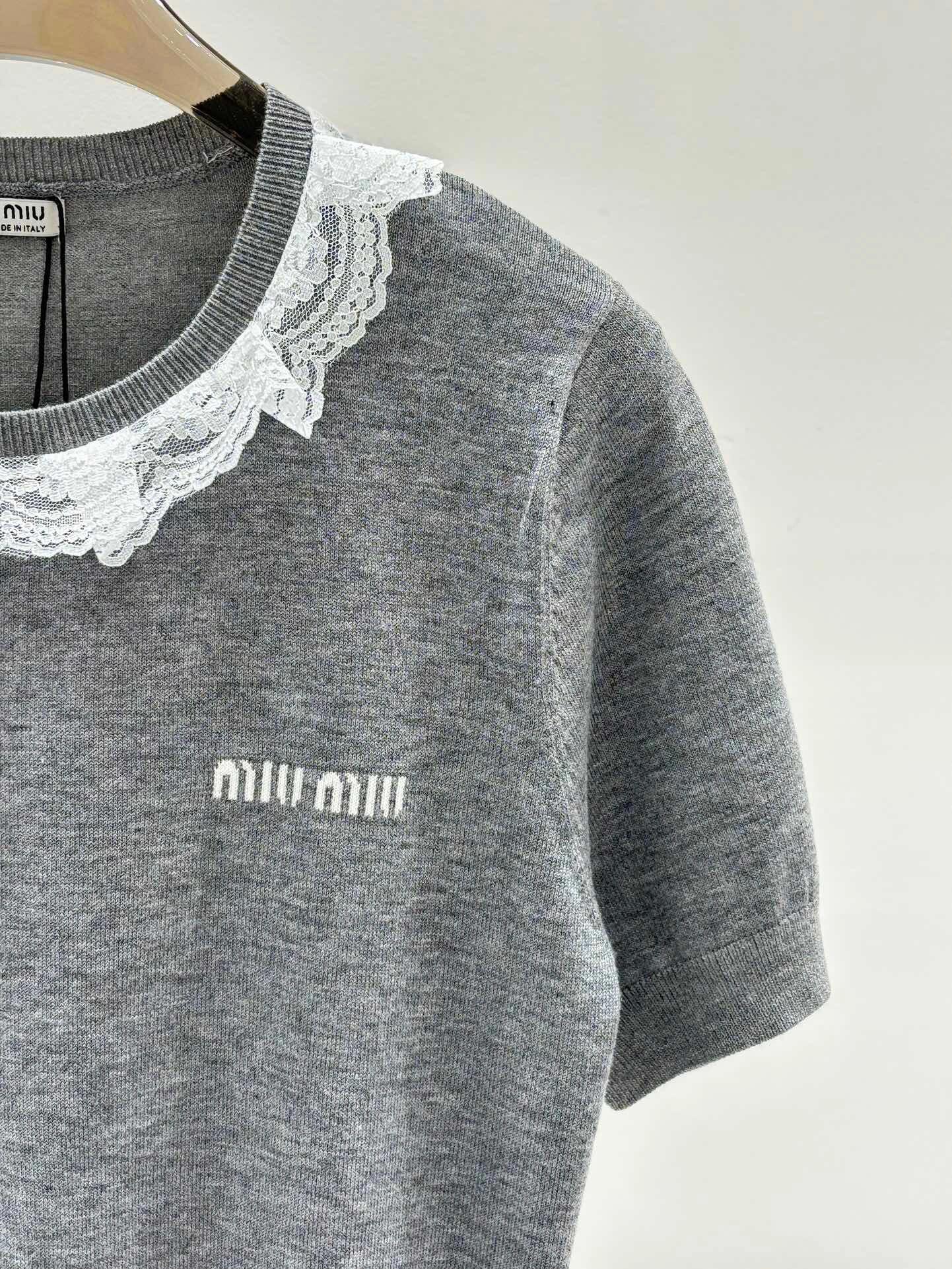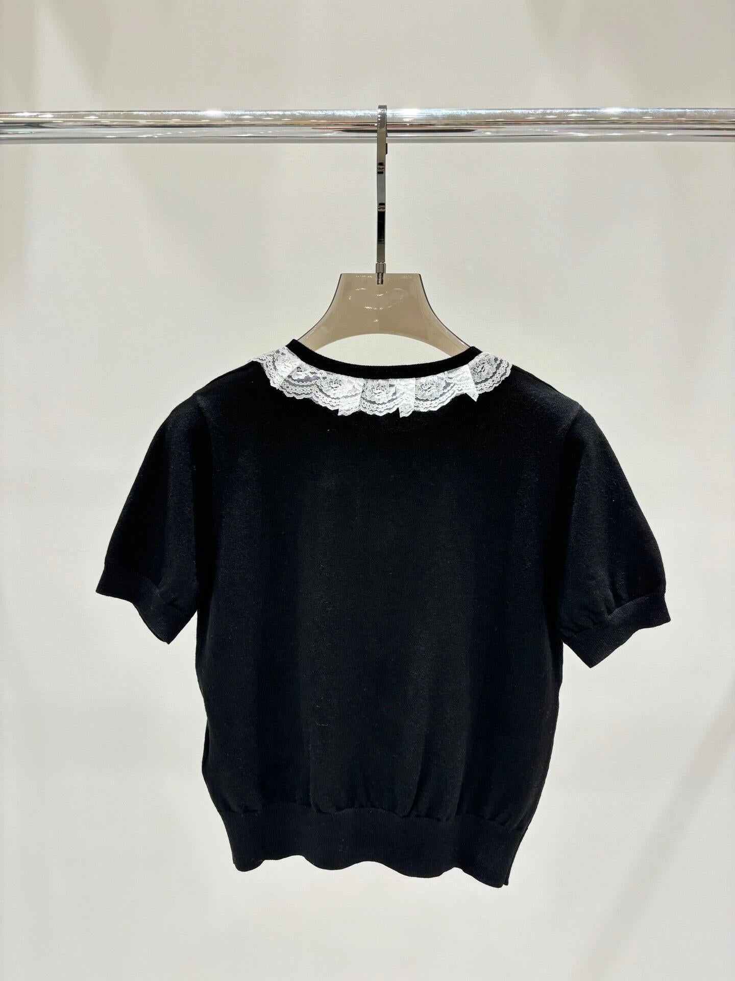Lace round neck knitted short sleeves