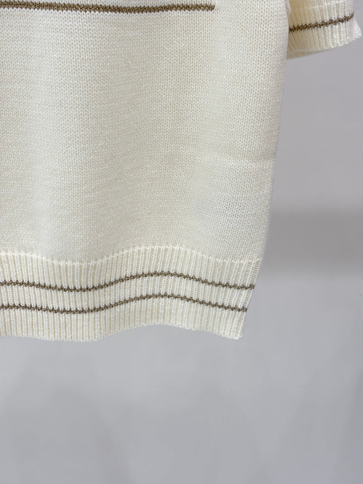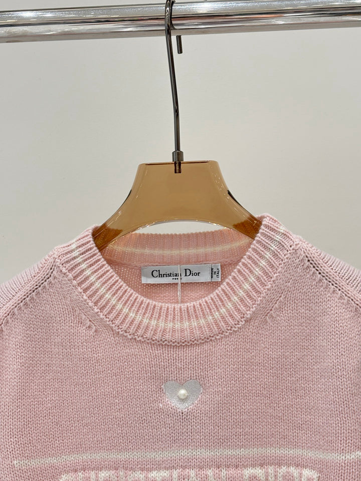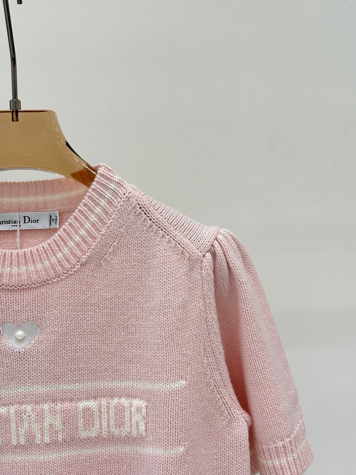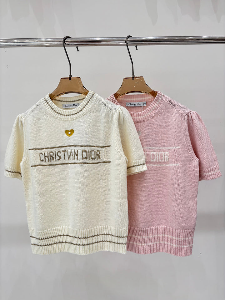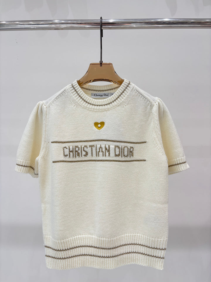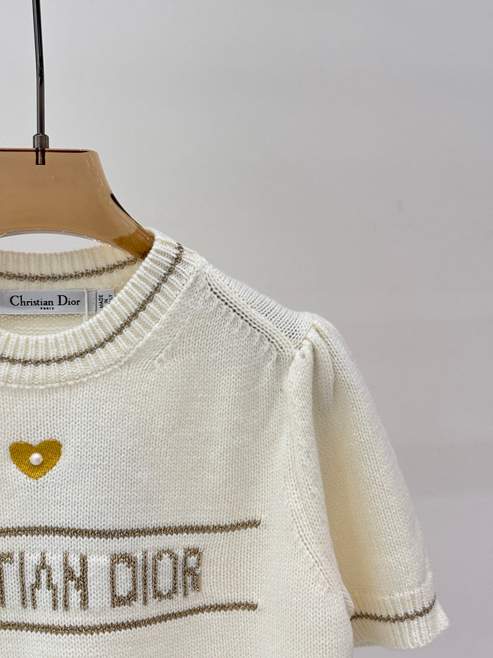 live shooting 💗 High end version, complete three standards, ready for immediate delivery in stock 🔥 D Home Short Sleeves | 25 Early Autumn New Round Neck Letter Logo Love Gold Thread Embroidery Jacquard Simple Bubble Sleeves Casual Knitted Short Sleeves