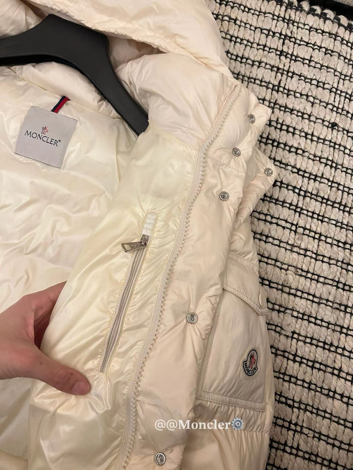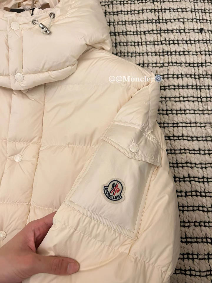 This short Parker down is made of longue Saion fabric, filled with functional details to ensure warmth and care. Featuring a detachable hood, zippered pockets, adjustable cuffs, and a snap up zipper flap placket. Sleeve embellishment with trademark. Adding a unique touch to the overall design while significantly improving the protective performance.
