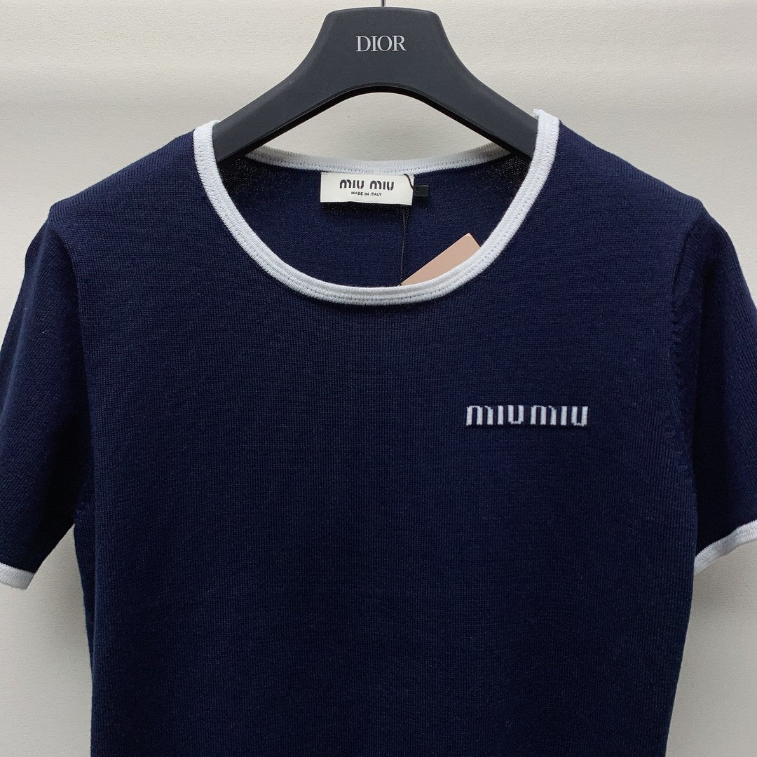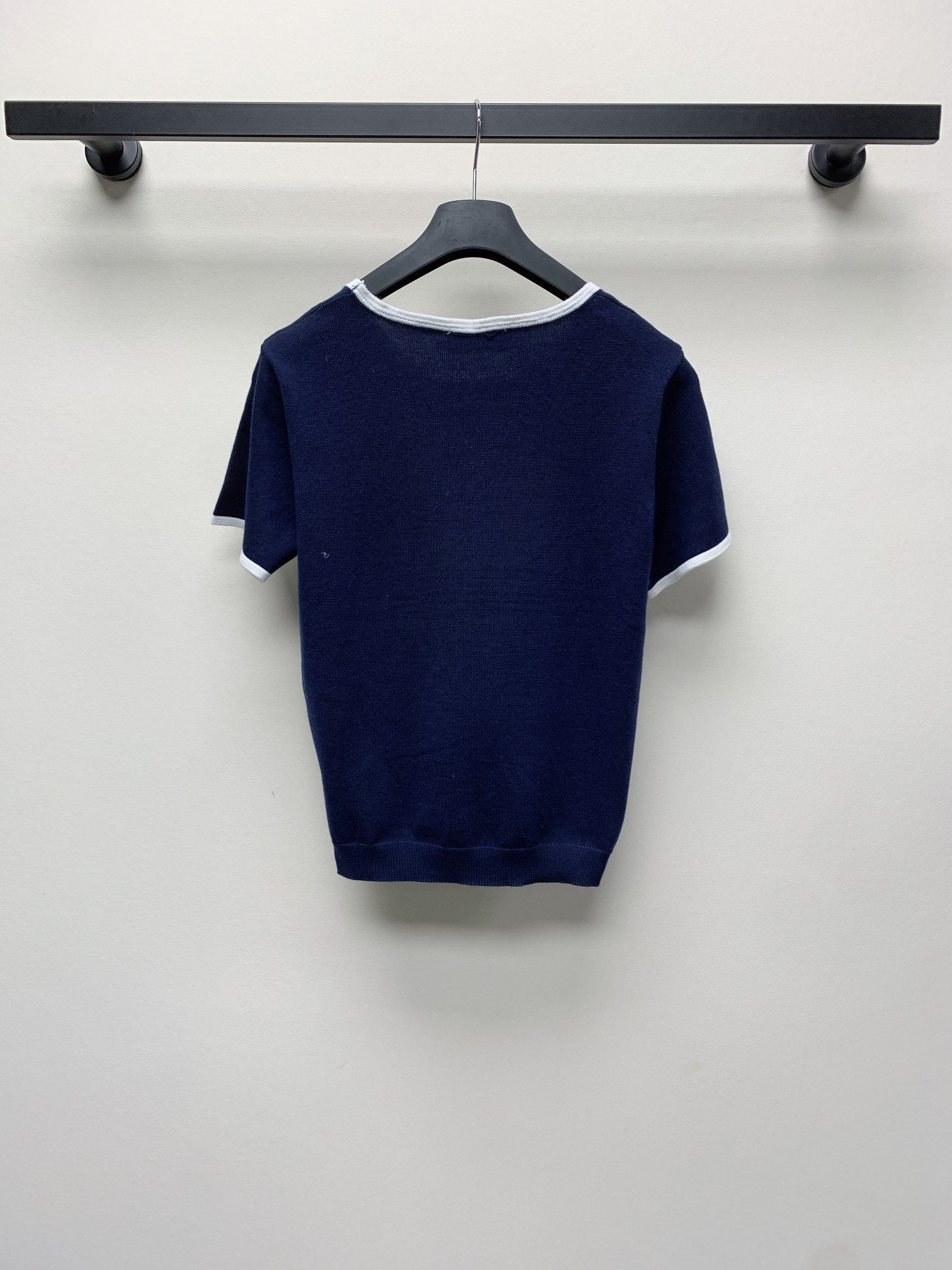 Spring/Summer New Round Neck Knitted Patchwork Short Sleeve Shirt
