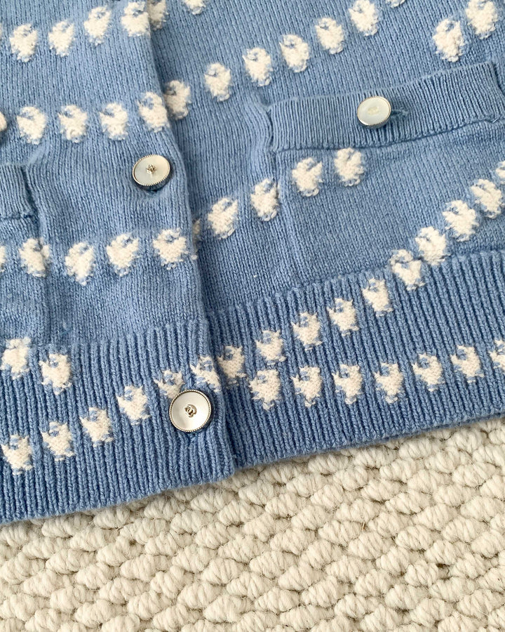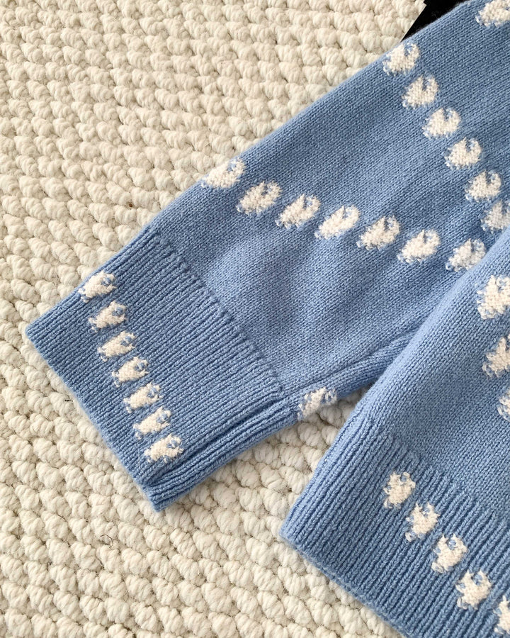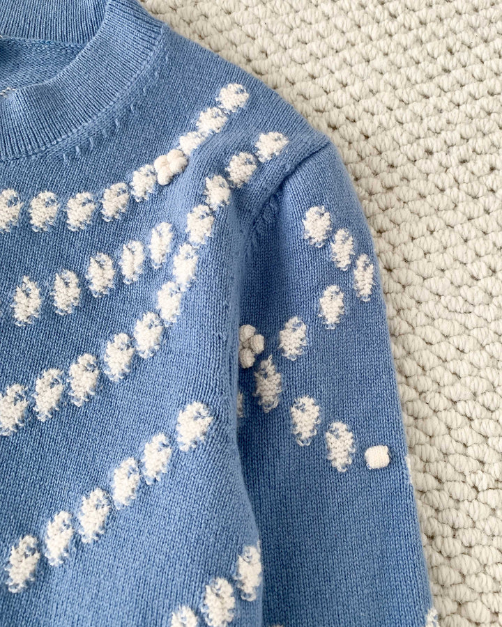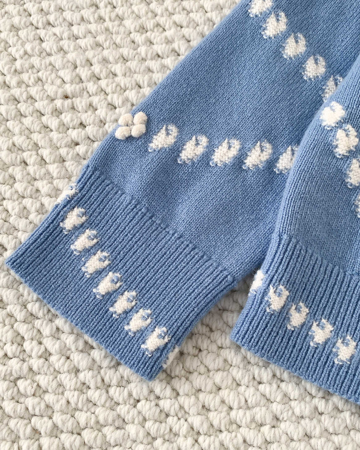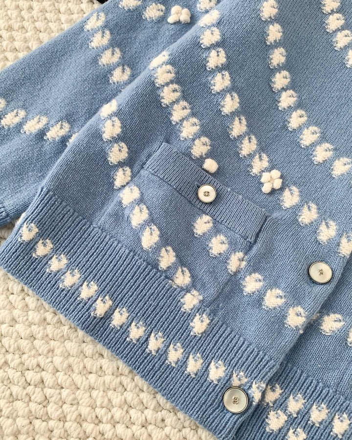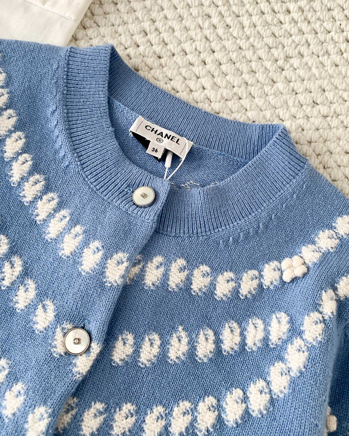Round neck ribbed design, exquisite and durable. The pearl chain jacquard is lifelike, adorned with three-dimensional flowers, and every detail exudes a sense of luxury.