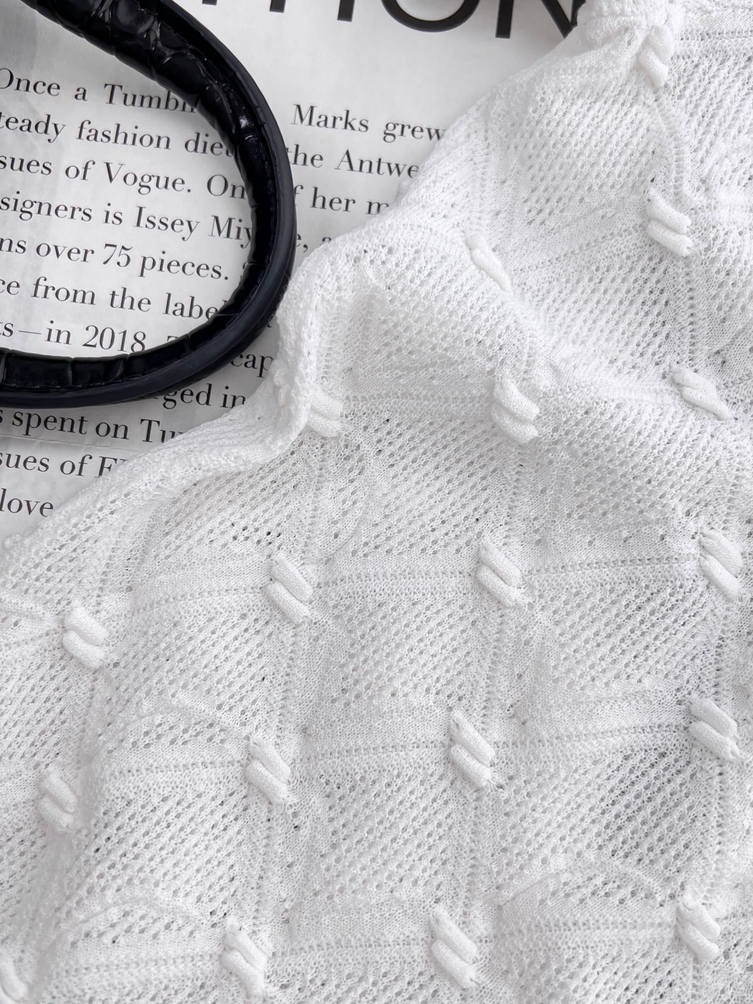 Knitted vest, imported 100% wool material, hollow knitted texture, logo decoration, overall high-end and simple, can be worn alone or layered, suitable for all seasons when worn alone. Single product, simple design, fashionable and high-end