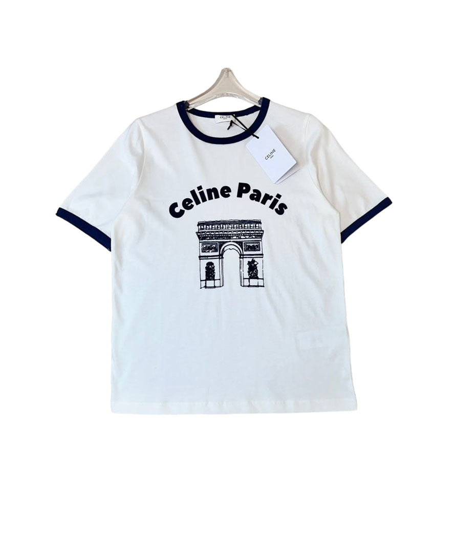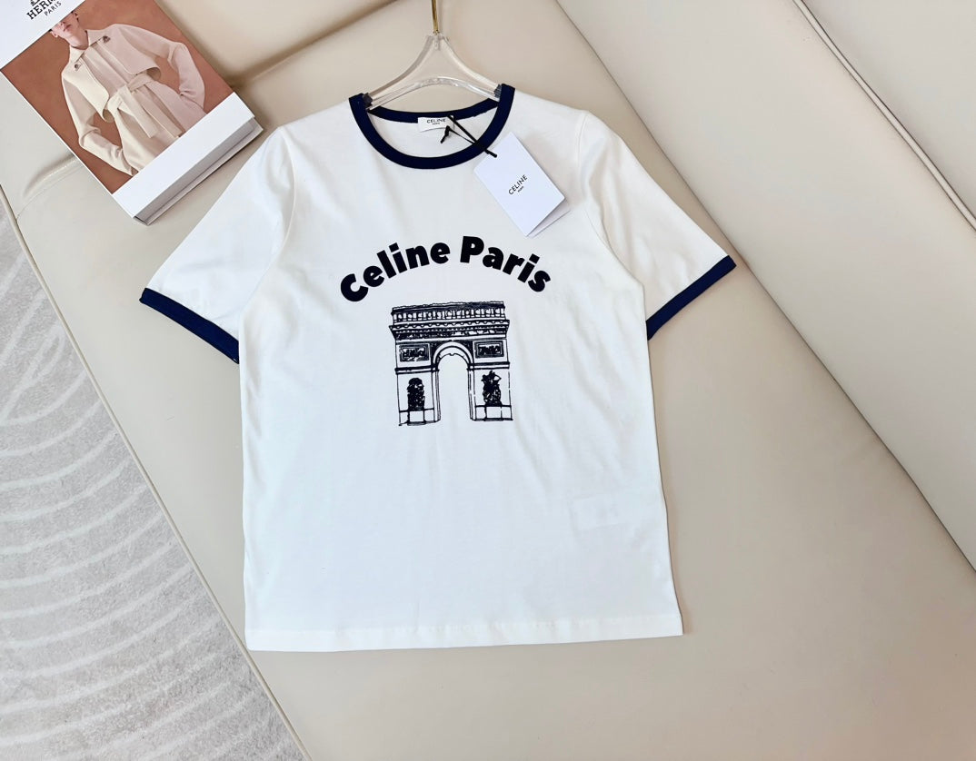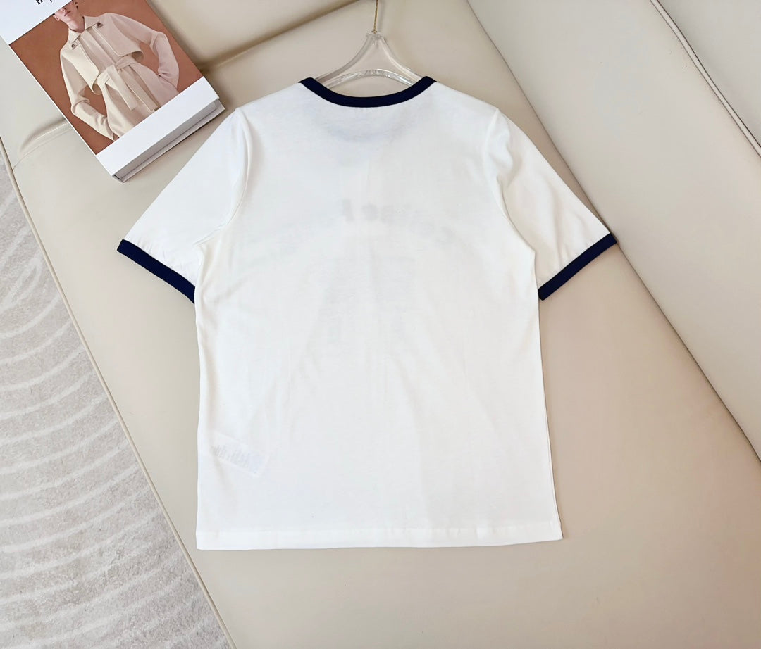 New round neck simple and versatile contrasting color flocking logo T-shirt