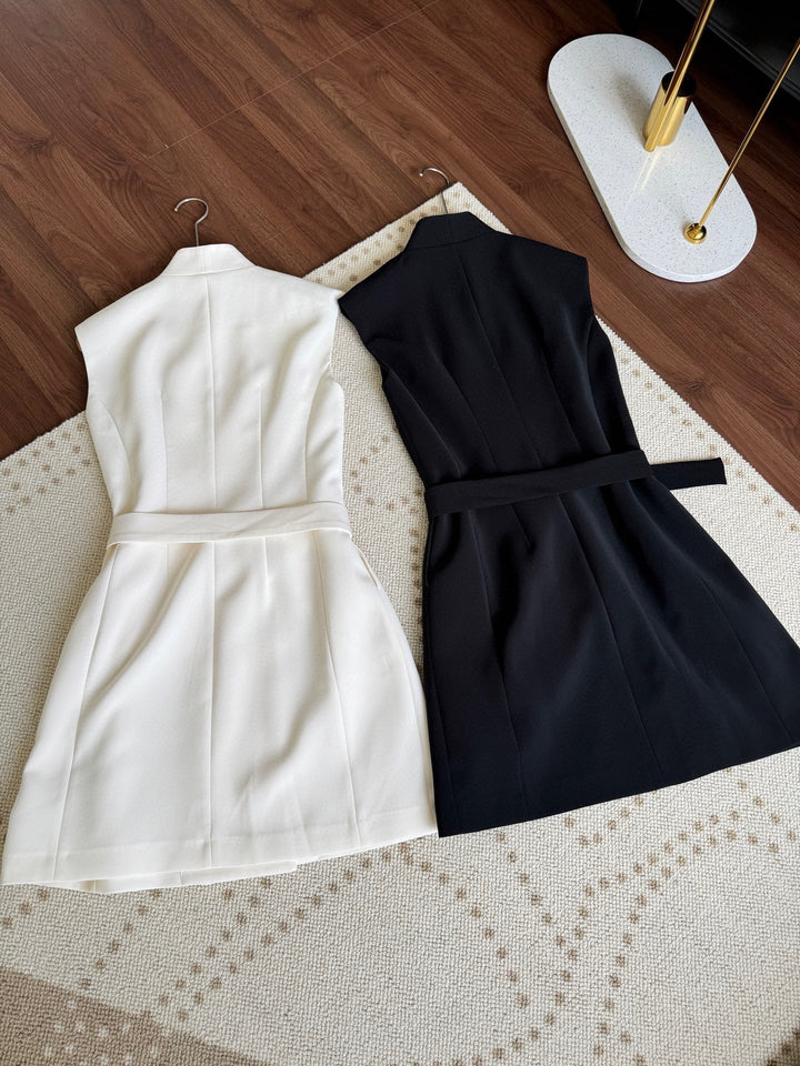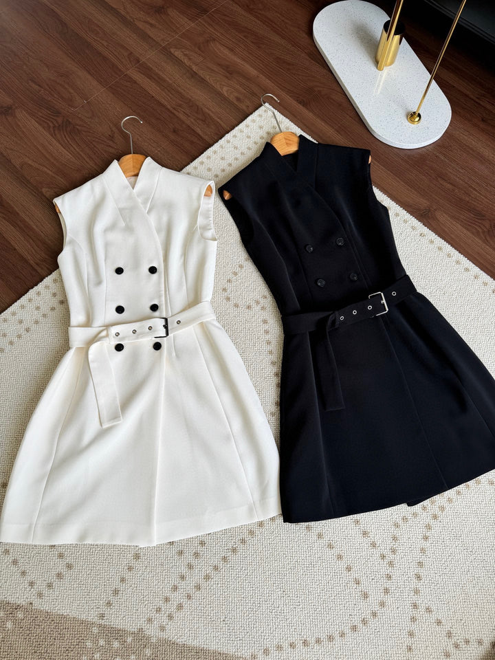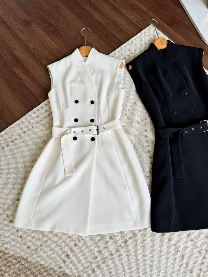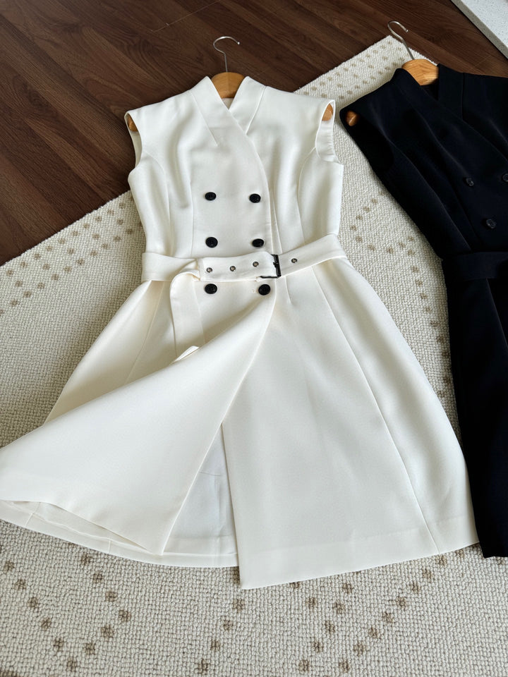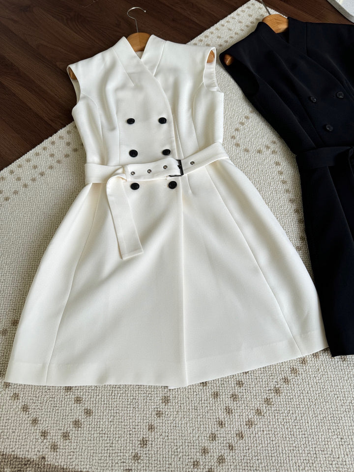 New V-neck button up sleeveless dress