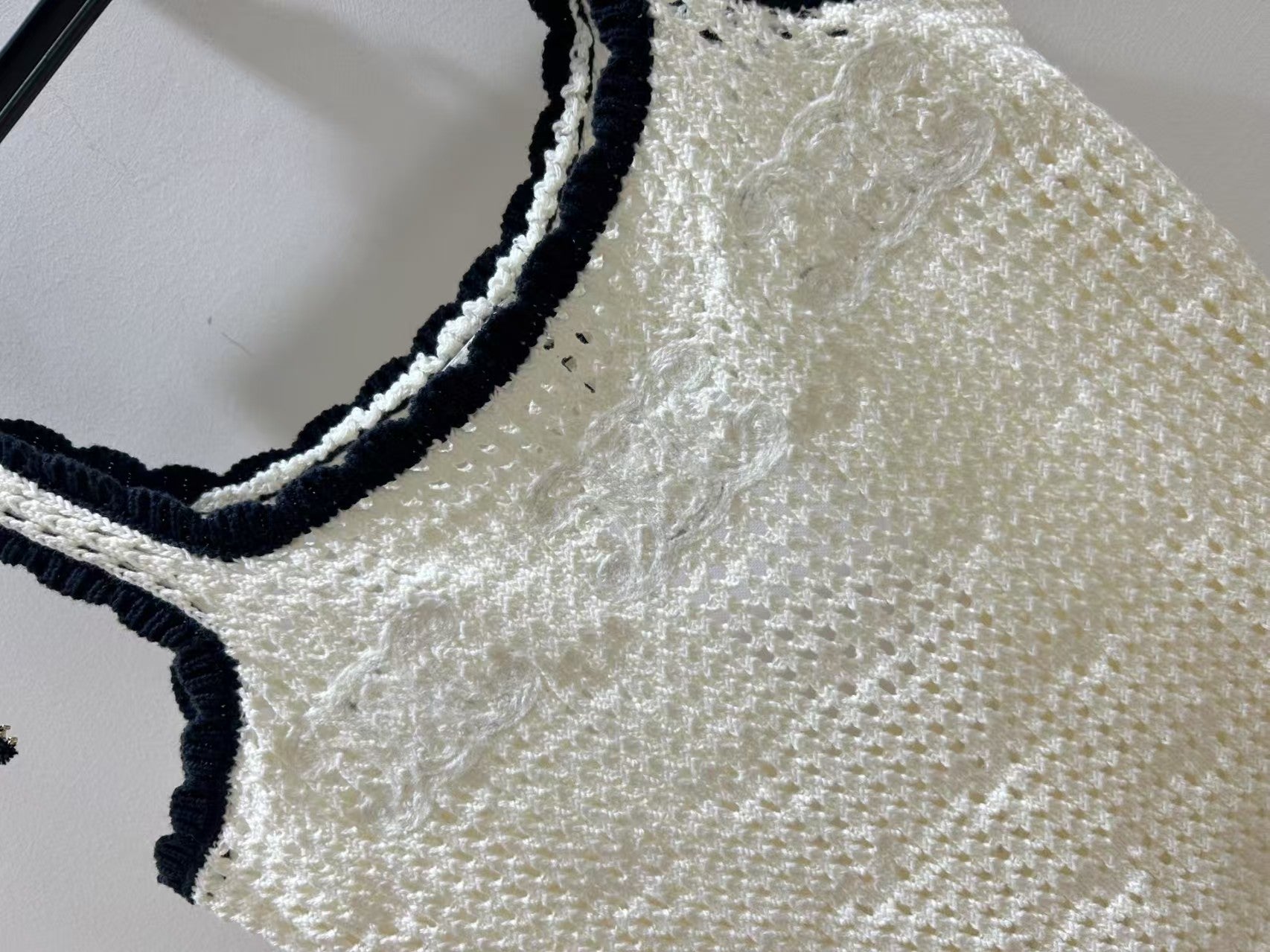 Hollow knitted lace-up vest, light and breathable, a must-have for beach vacation. Fashionable hollow design, elegant lace embellishment, showing the beach style, simple but stylish.