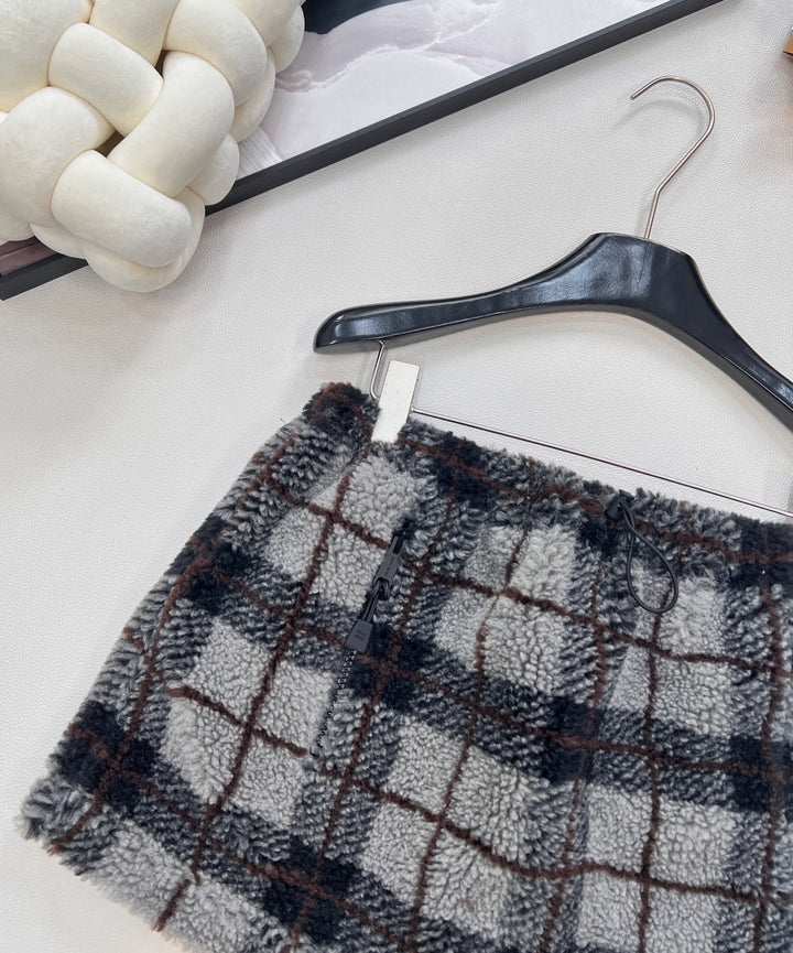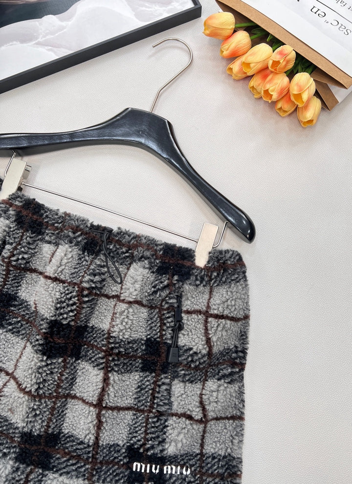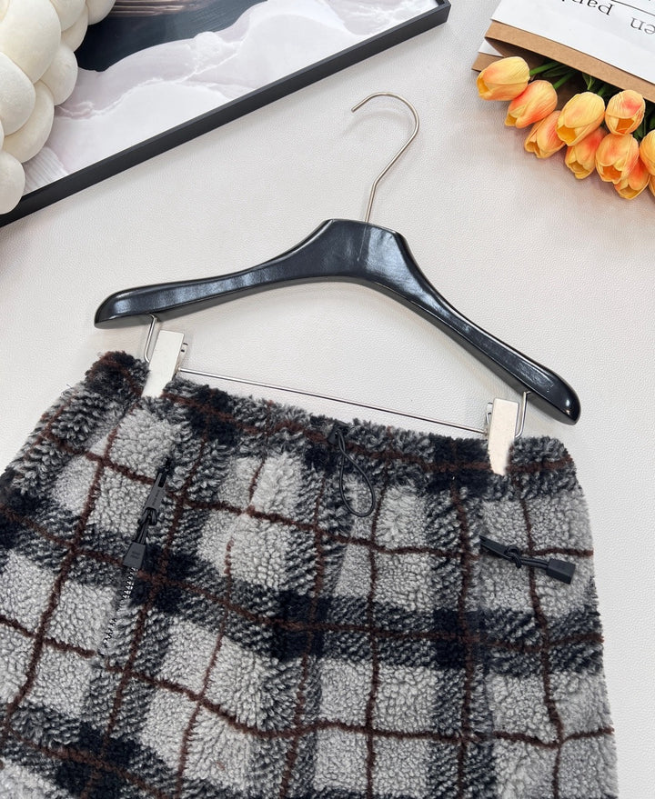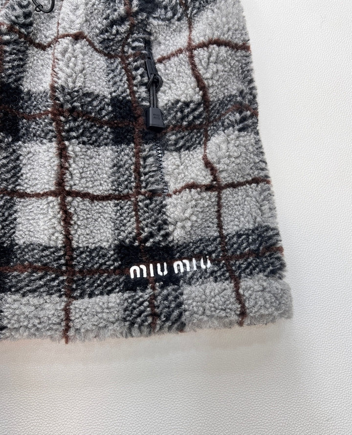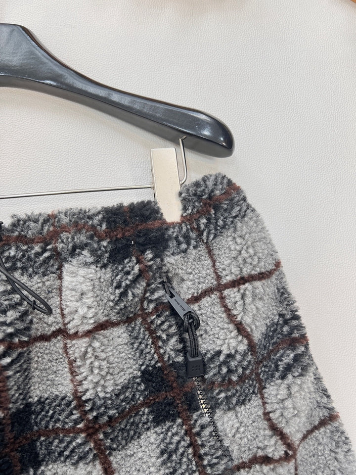The whole body is decorated with teddy wool material, which is soft and comfortable in texture, fashionable and western-style. The stand up collar jacket is cut, and the front zipper is used ➕ The chest letter logo decoration showcases the brand's style. The whole body is composed of a grid pattern with black, white, and gray stripes, creating a perfect appearance and high-end fashion. The teddy wool has a soft and fluffy texture, and the drawstring adjusts the elasticity for comfort and warmth. It is the first choice for autumn and winter wear, with a fashionable and stylish style.