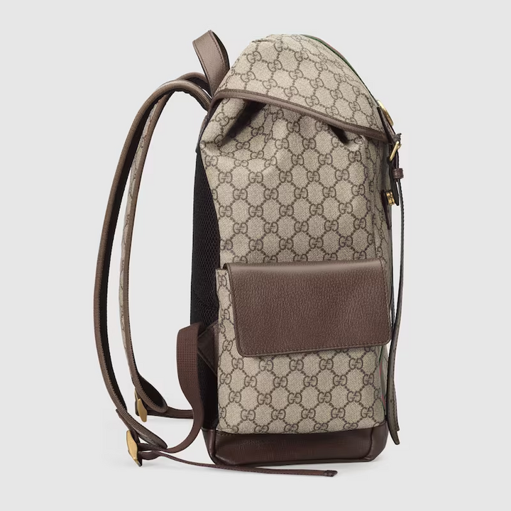 Drawstring flap design with leather buckle fastening strap and extra magnetic buckle for easy opening and closing