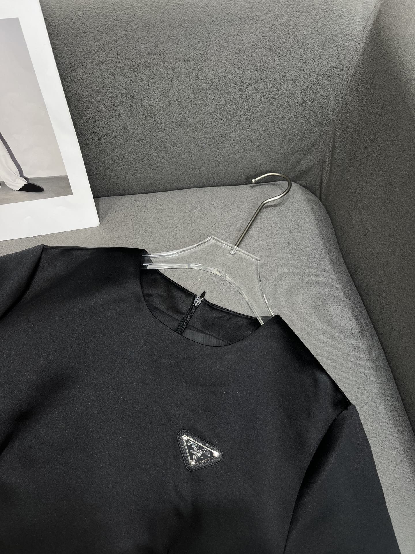 New style early autumn half sleeve dress 👗/nylon fabric/belt buckle triangle label decoration/high quality/single color three sizes SML