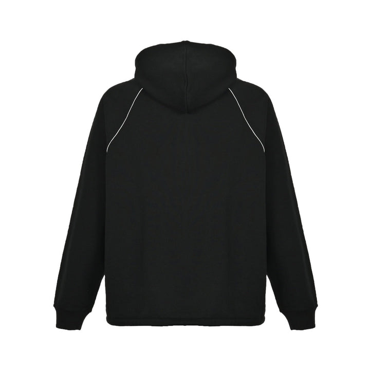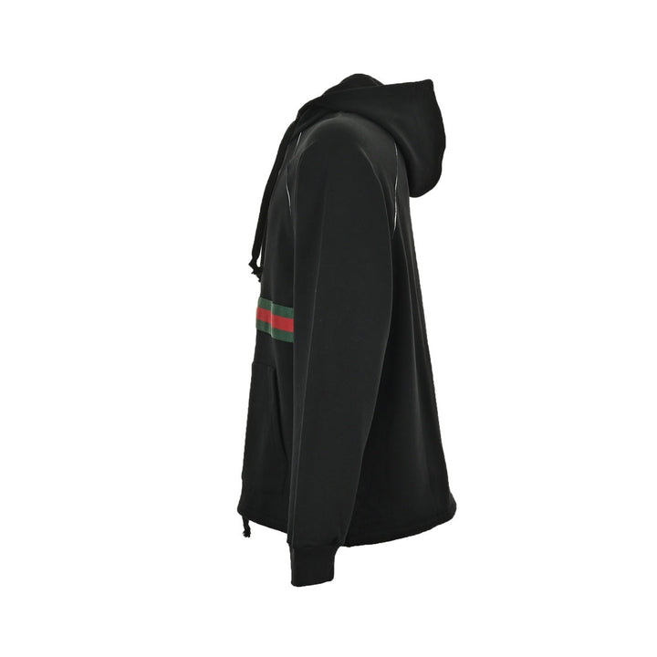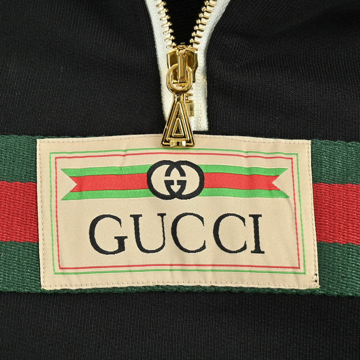 Red and green webbing half-zip long-sleeved hooded sweatshirt