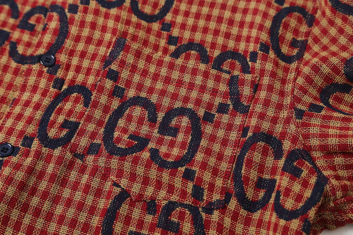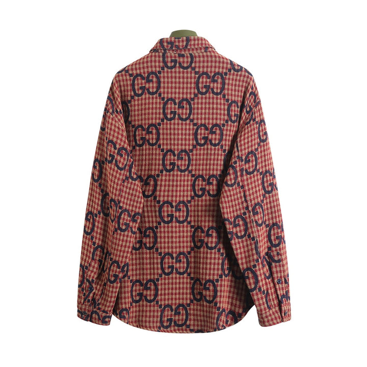 Red plaid wool, cotton and linen jacquard long-sleeved shirt