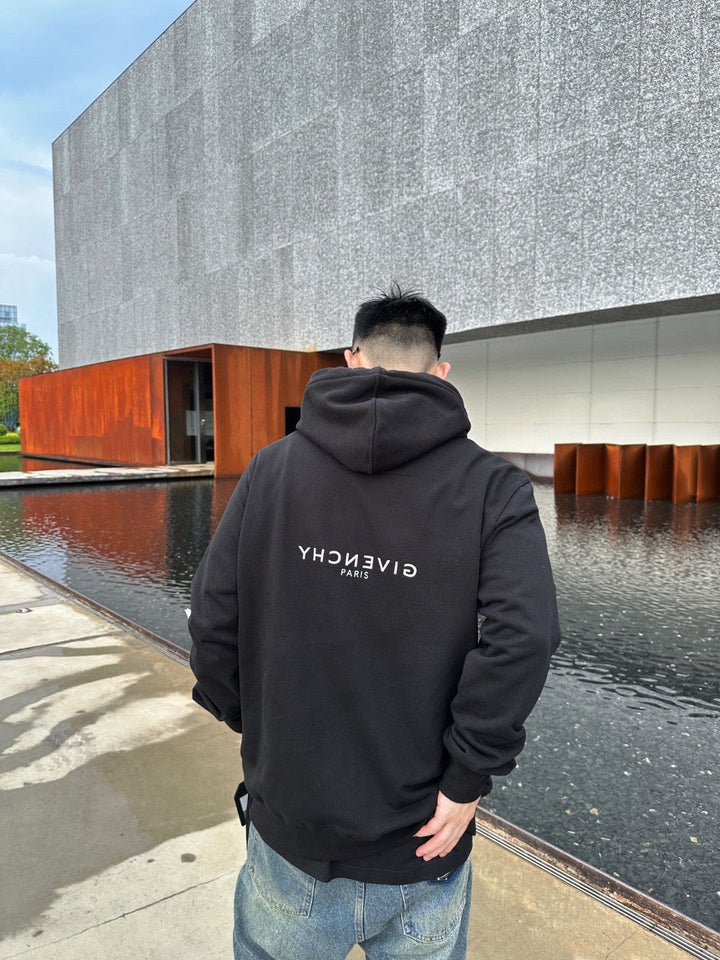 Reverse letter print hooded sweatshirt