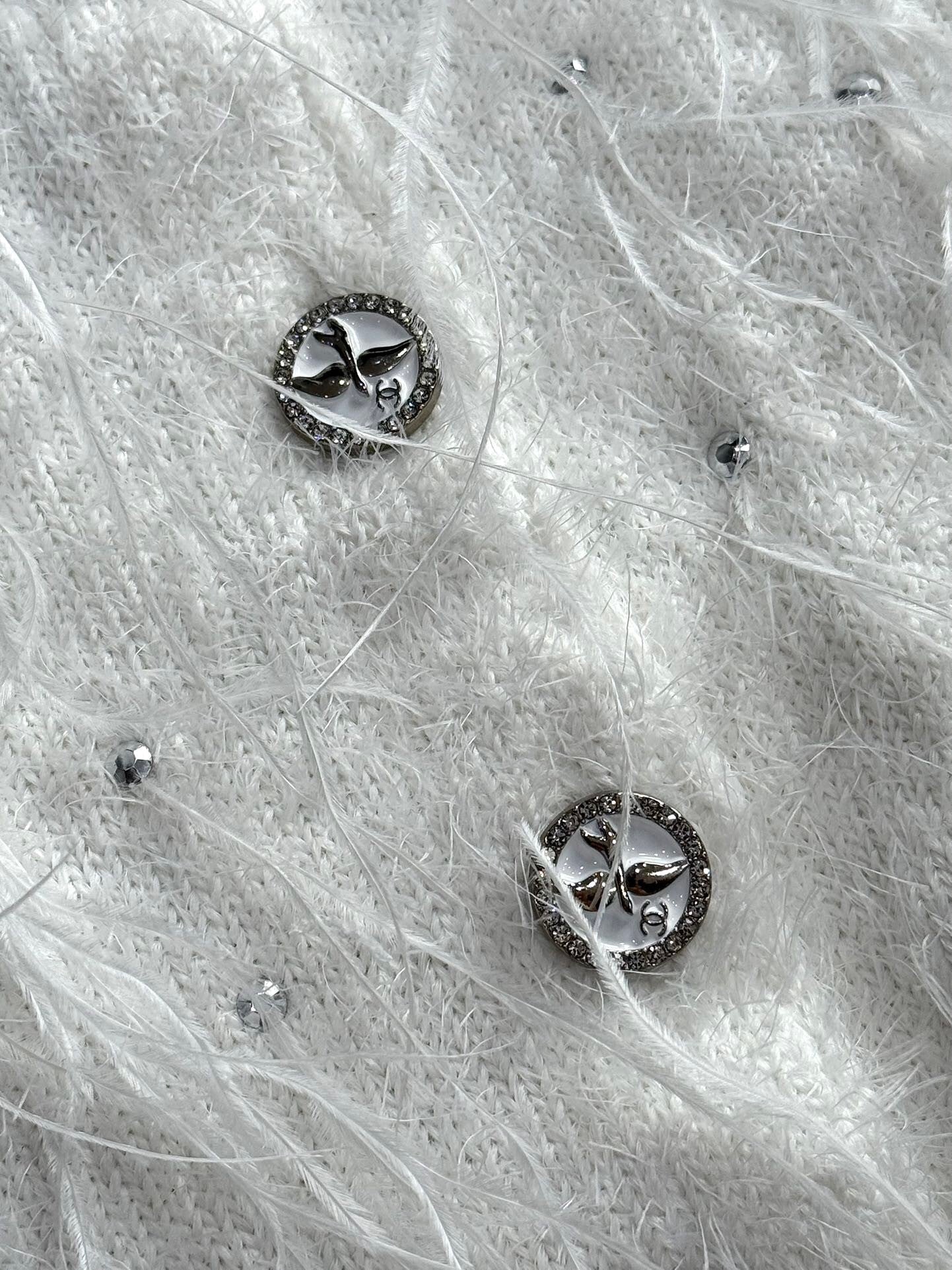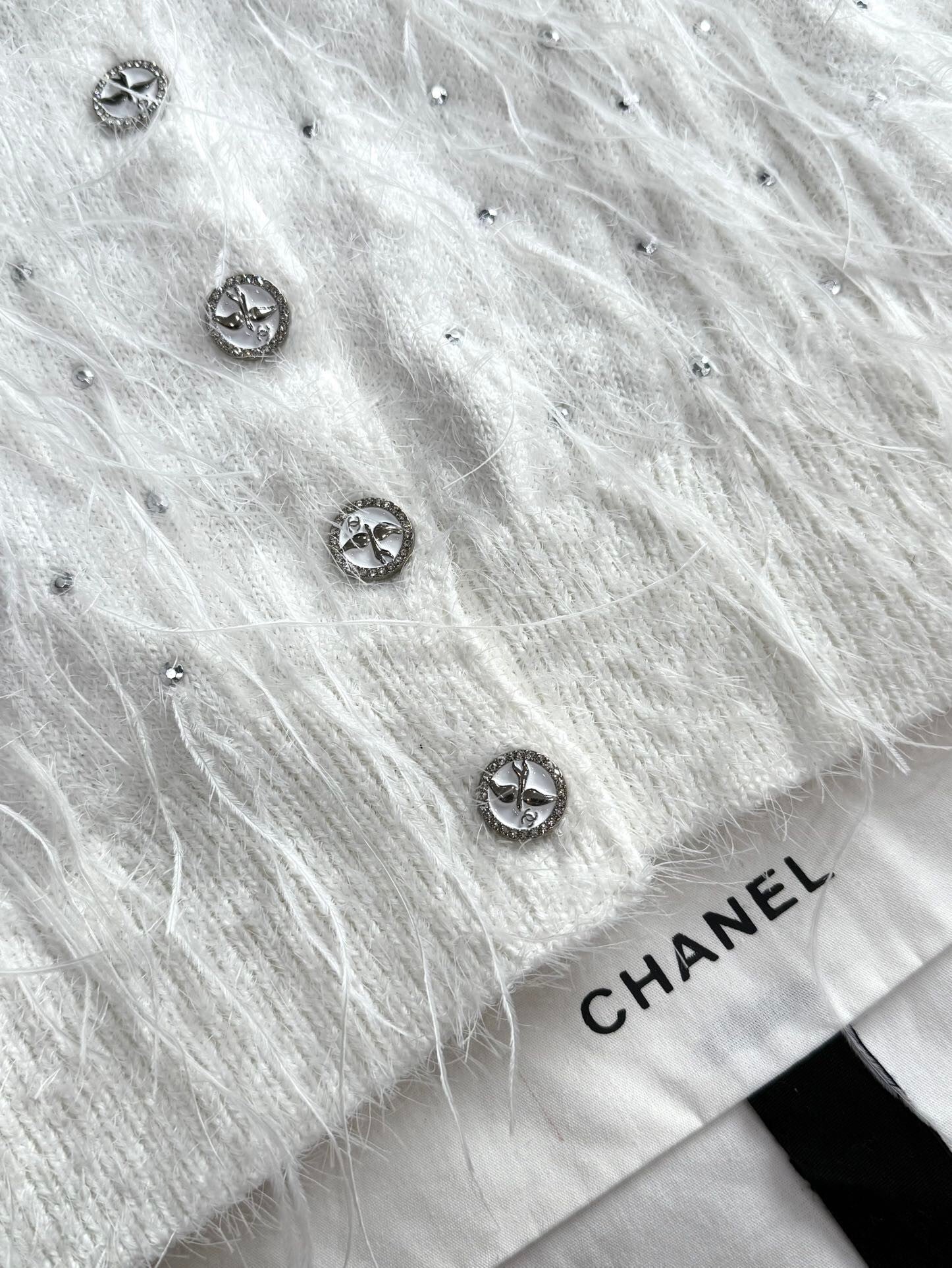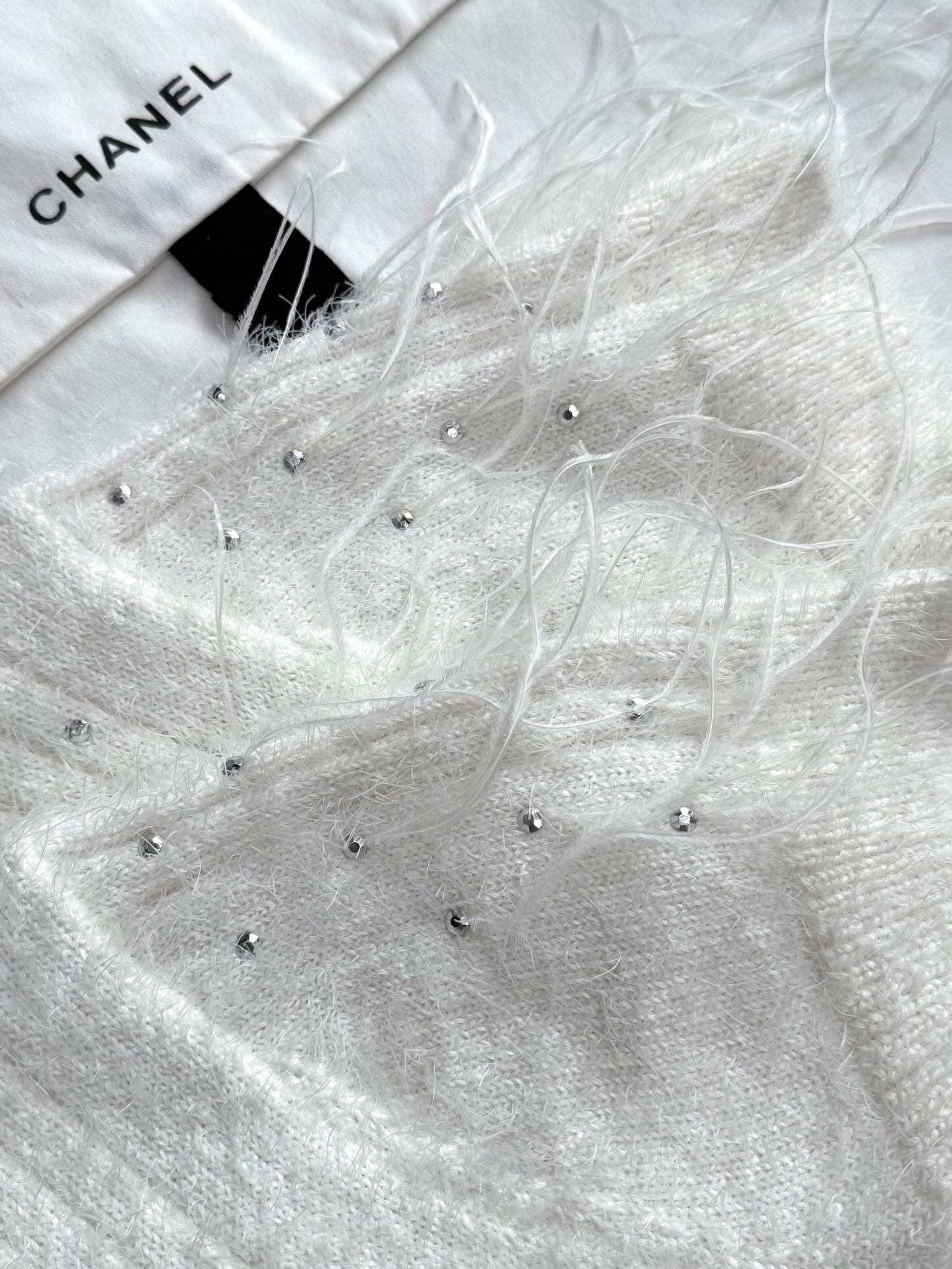 Round neck single-breasted design Crystal hot diamond embellishment Ostrich feather decoration Fluttering spirit fairy full Cotton blended knitting fabric Soft and comfortable Stretch Slim fit Slim and temperament on the body