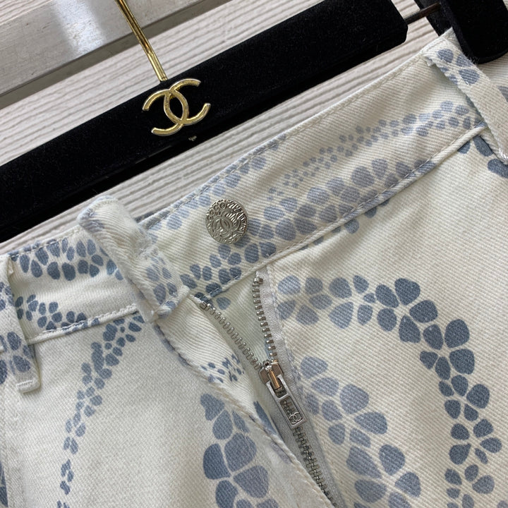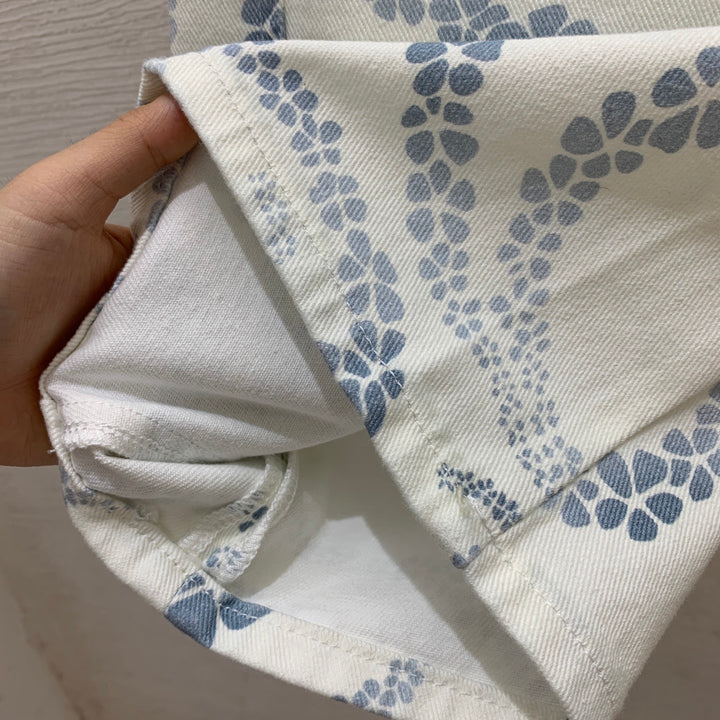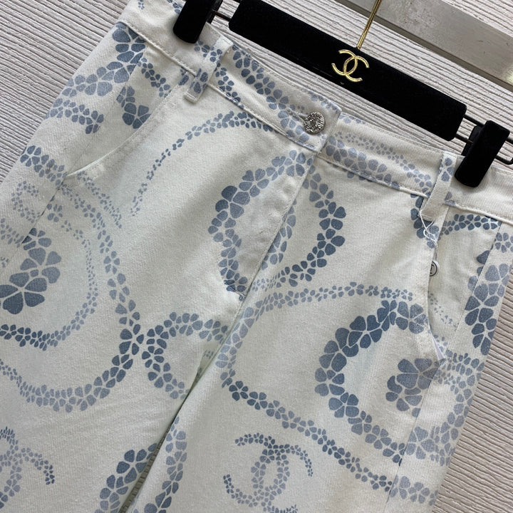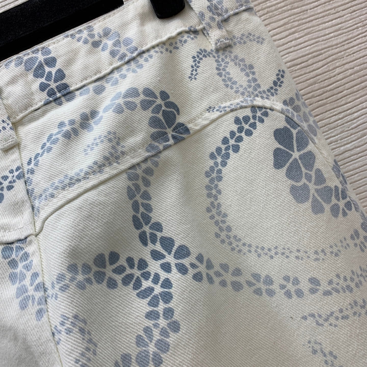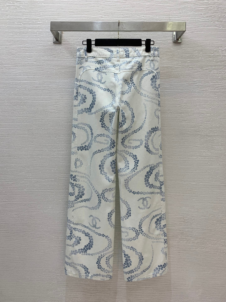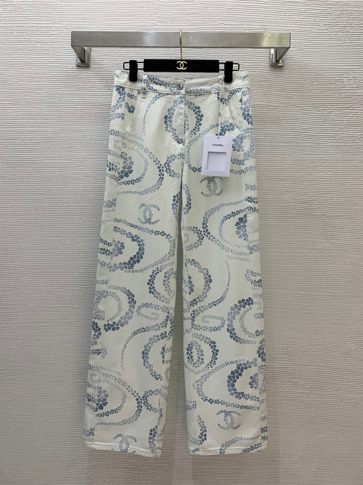 New high-end customized corrugated flower double print fashionable and versatile straight leg wide leg jeans and pants!