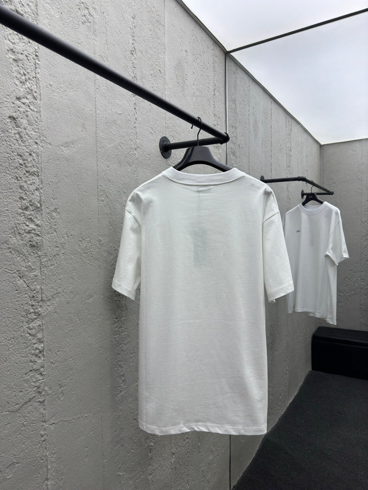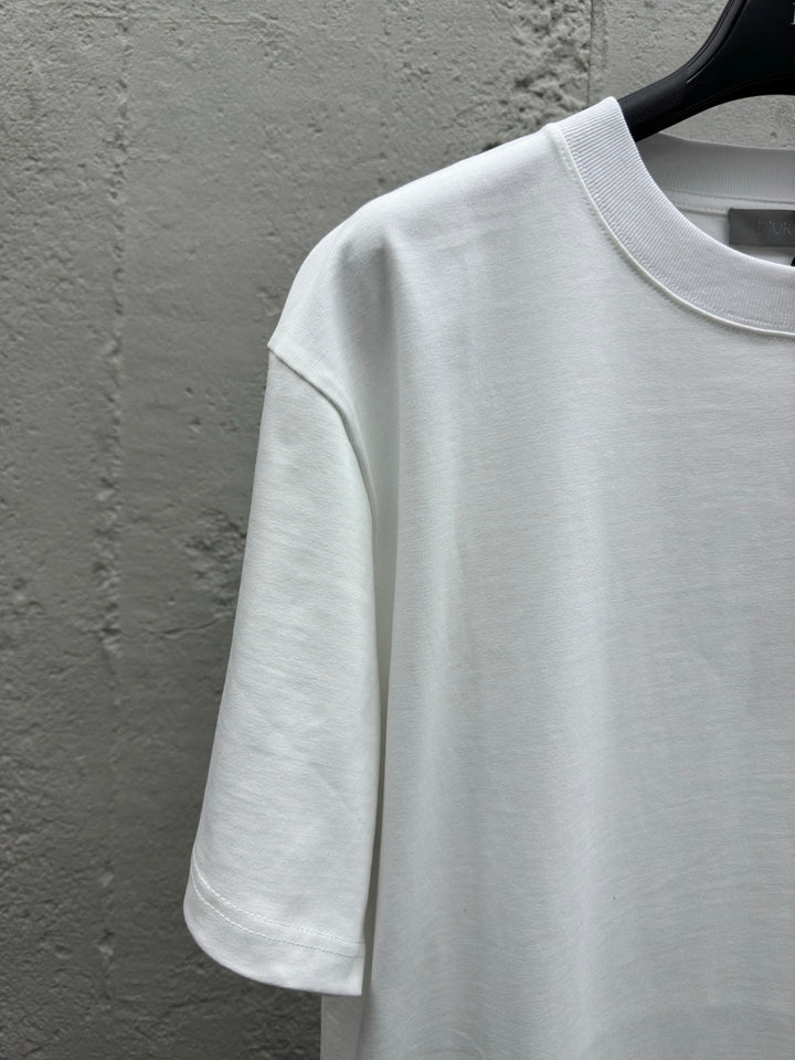 Crafted from cotton jersey with a ribbed crew neck for a classic silhouette. It is made of 26S double yarn fine cotton plain weave, which usually has better breathability due to its special weaving method. Double yarn design, that is, two layers of yarn are interwoven. This structure increases the thickness and density of the fabric. It is a high-quality fabric that combines fineness, durability, warmth and breathability. Needle embroidery is a commonly used technique in the field of embroidery and has unique style and characteristics. The number of times the stitches are repeated highlights the layering and delicacy.