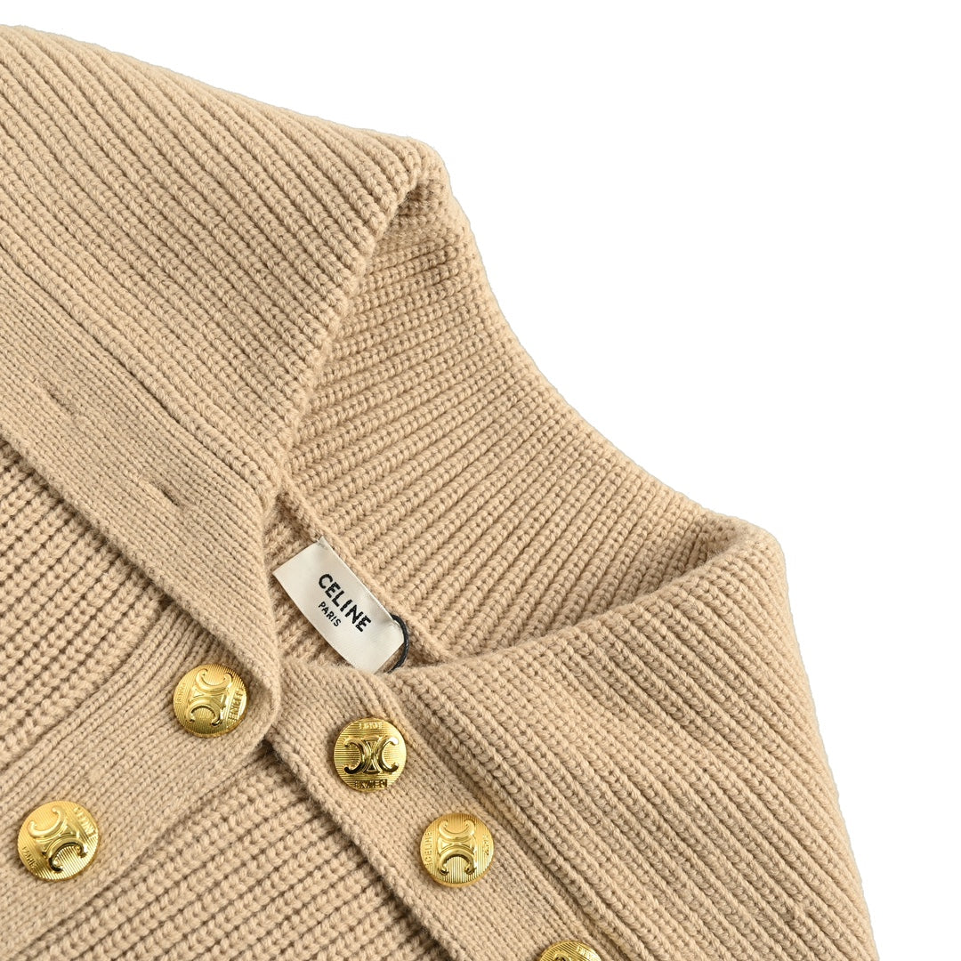 Single-breasted gold button lapel women's sweater