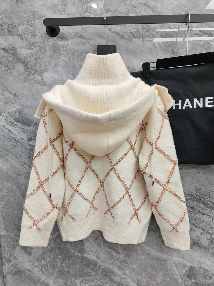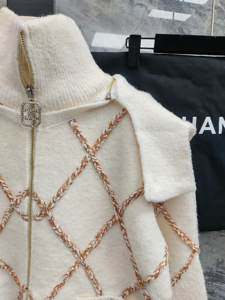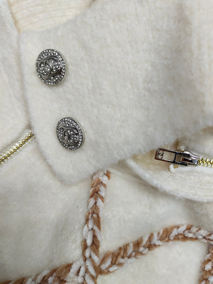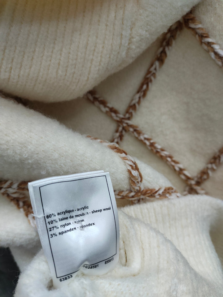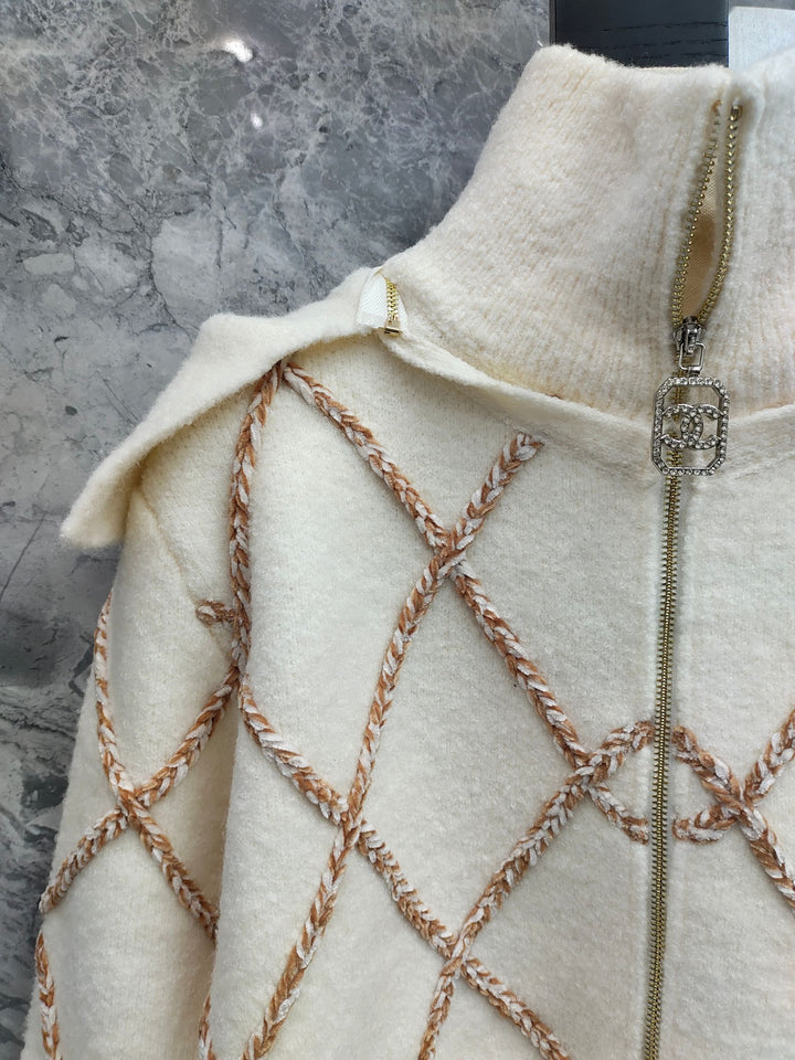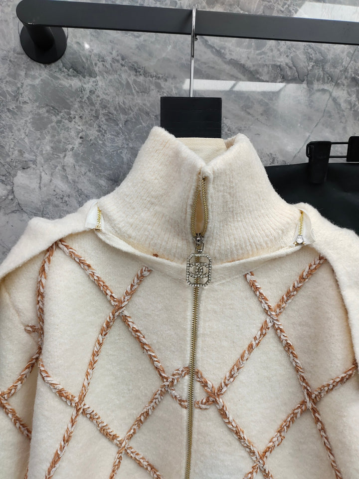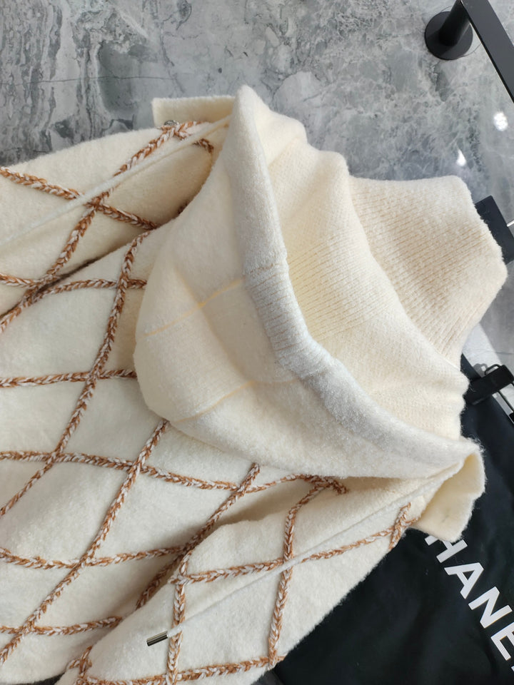 Off white cashmere fabric, hand woven diamond grid pattern, with metal buckle, super warm and comfortable!
