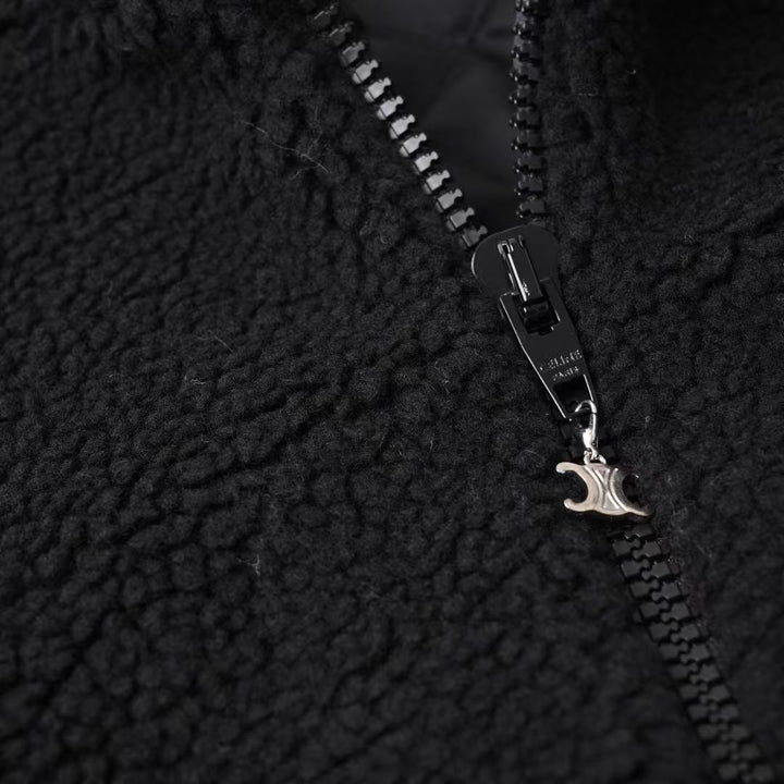 Blended fleece fabric, fleece fabric combines the advantages of nylon and polyester fibers to form unique performance characteristics. It has good thermal insulation performance, good wrinkle resistance, strong durability, excellent elasticity, more convenient to wear and care for, and at the same time, fleece fabric can provide effective warmth in cold environments. The pocket embroidery uses cashmere embroidery thread material and embroidery technology, and the soft texture and delicate texture are perfectly integrated with the exquisite craftsmanship of embroidery. Lining nylon fabric, the fabric has excellent wear resistance, and has good moisture absorption as an inner lining. The quilted wilting grid line is composed of intersecting diamonds, and a layer of cotton or thermal insulation material is sandwiched to improve the warmth performance. High collar and loose version, the high collar design can effectively block the cold wind from entering the neck and is practical, and the loose tailoring is more inclusive and can modify the body shape well. Two zippered oblique pockets, one zippered chest pocket, an adjustable drawstring at the waist, with an engraved metal end, and zippered opening and closing design on the threshold and pockets.
